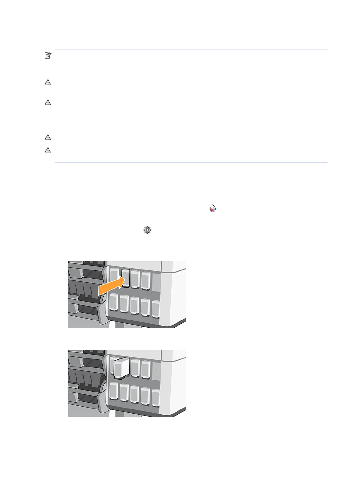 VOORZICHTIG: De procedure om een inktcartridge te verwijderen, moet worden gestart vanuit het