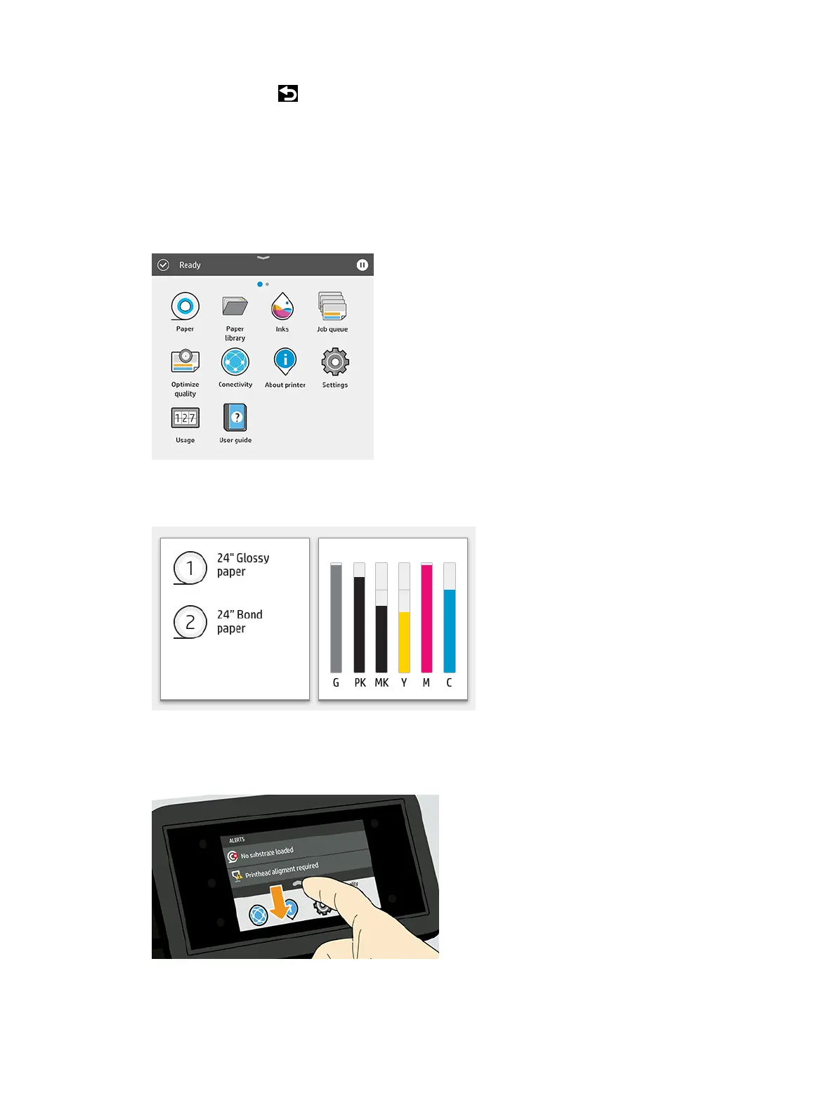 de belangrijkste functies van de printer. Veeg het dashboard omlaag om het statuscentrum te
