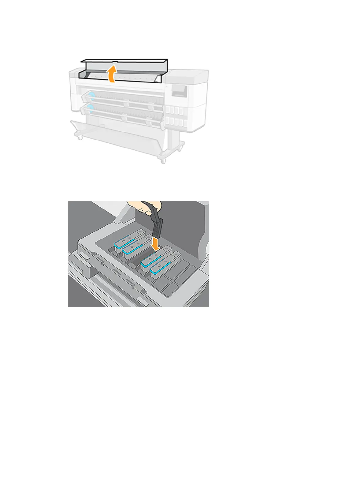 3. Open de printkopwagenvergrendeling en verwijder de defecte printkop zoals is aangegeven op het