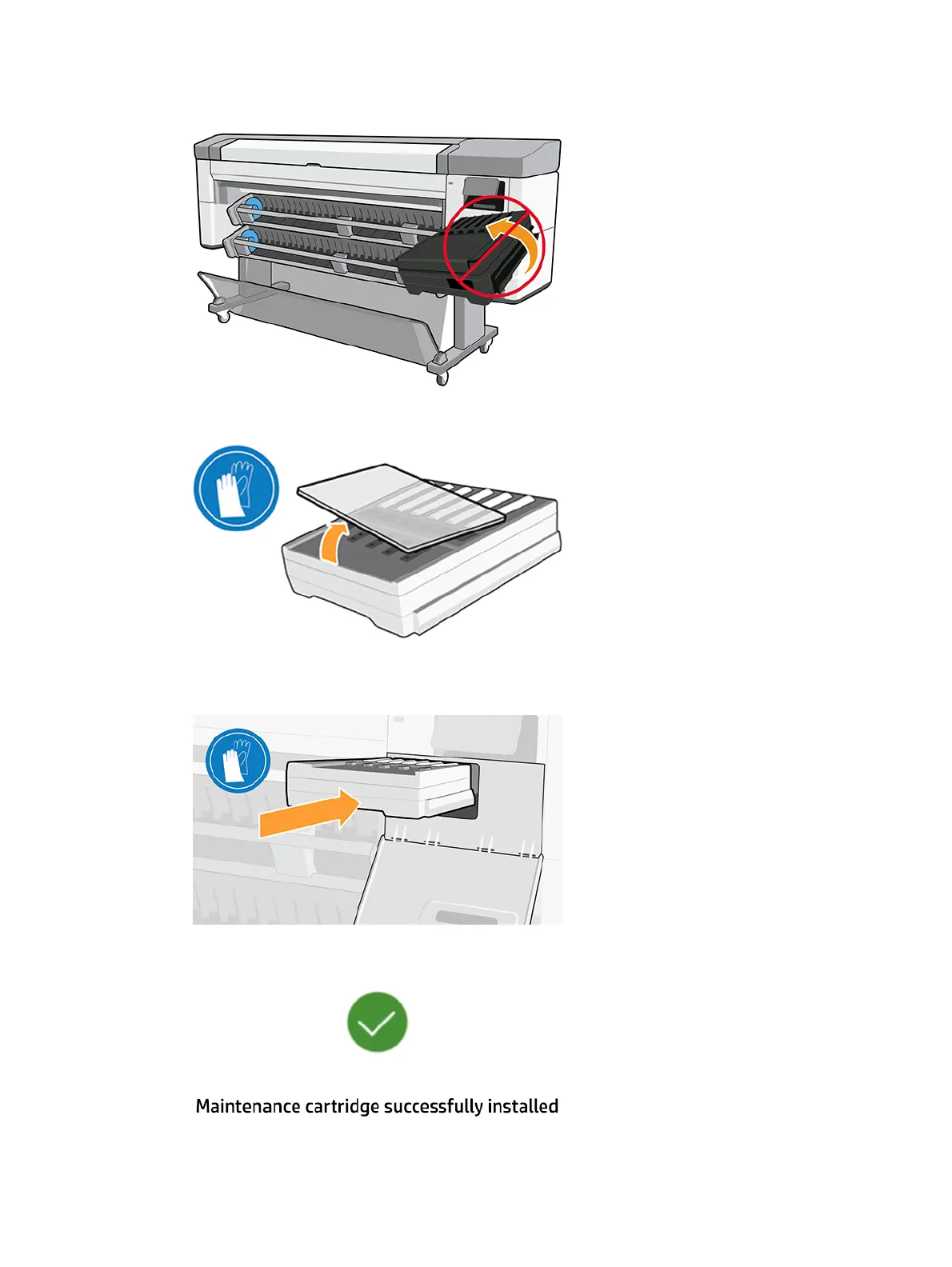 7. Op het front panel wordt bevestigd dat de onderhoudscartridge is geïnstalleerd.