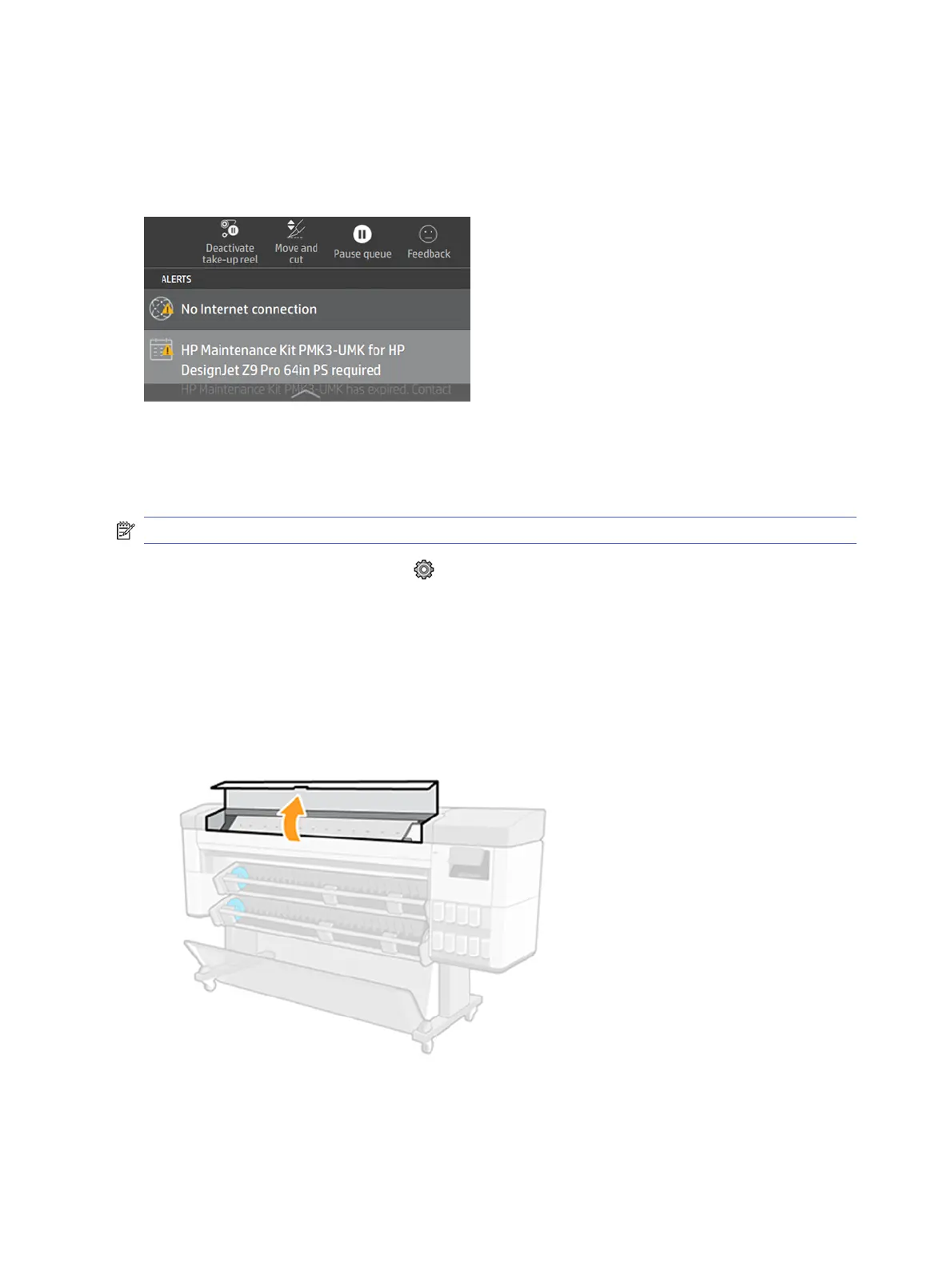 Tik op het front panel op het pictogram Instellingen en vervolgens op Preventieve onderhoudstaken >