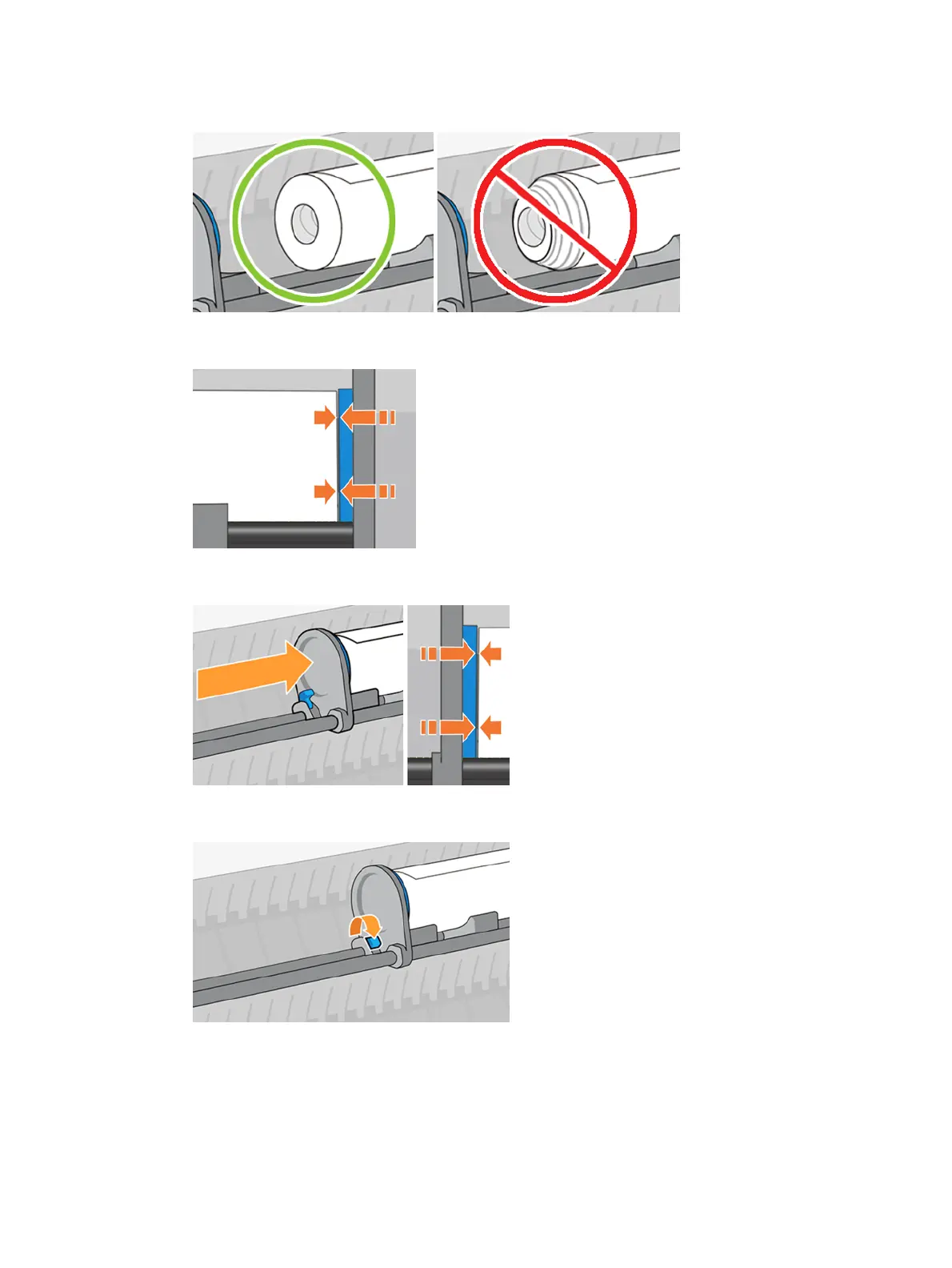 10. Duw de rechternaaf in de kern van de rol totdat deze contact maakt met de blauwe schijf.