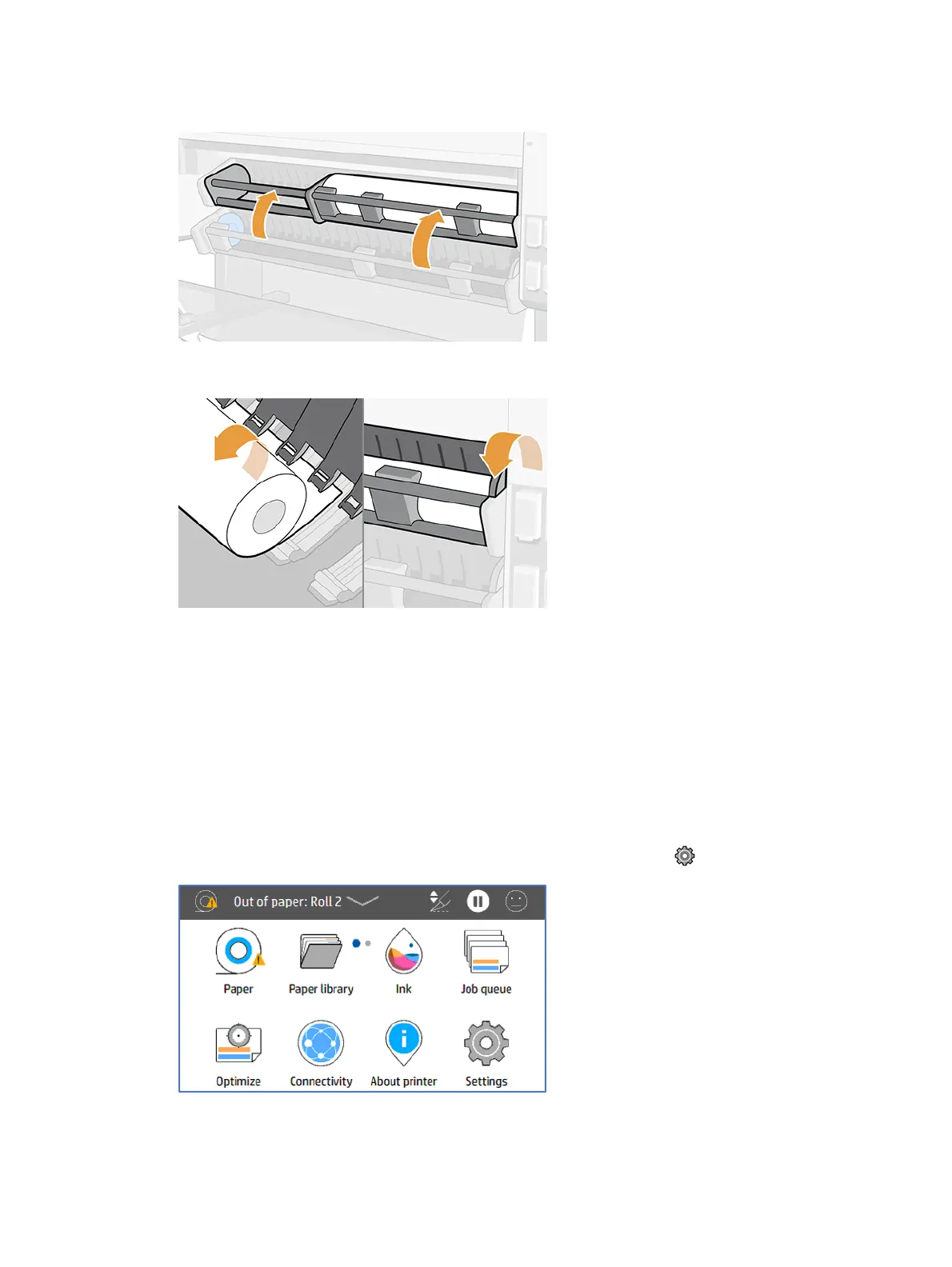 1. Ga naar het front panel en tik op Papier en vervolgens op het pictogram Instellingen.