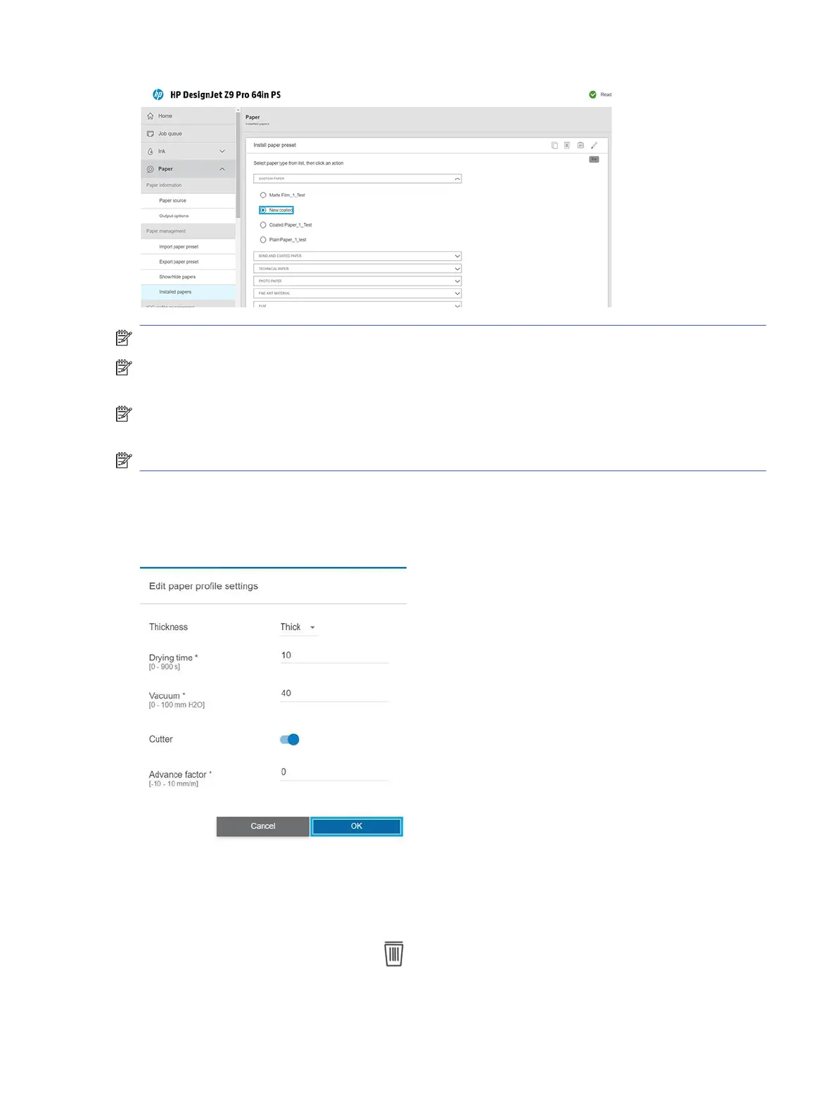 Om dit te doen drukt u op het pictogram Bin in het papierbibliotheekscherm of in de geïntegreerde