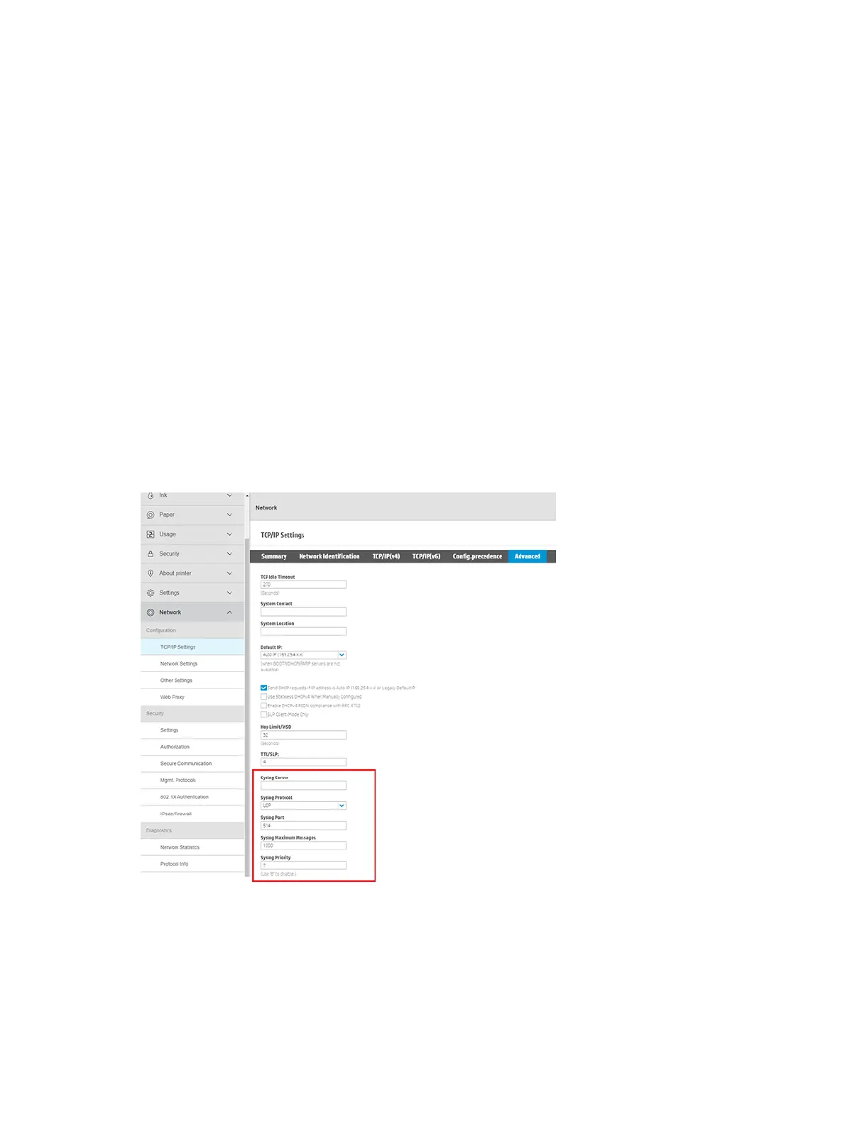 Om de syslog-server en -instellingen te configureren, gaat u naar Embedded Web Server en klikt u op