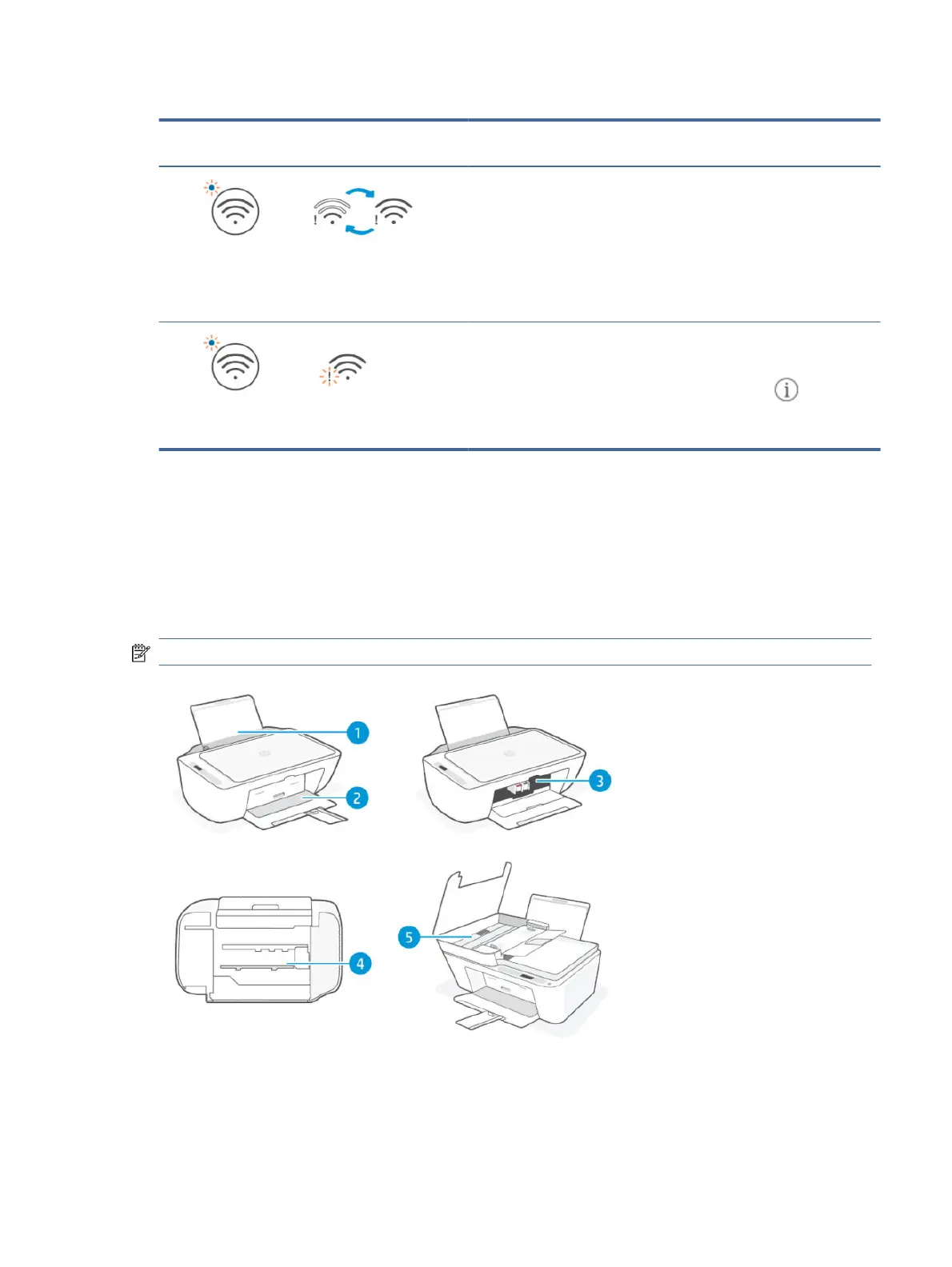 Wi-Fi-knop/-lampje Wi-Fi-pictogrammen op het