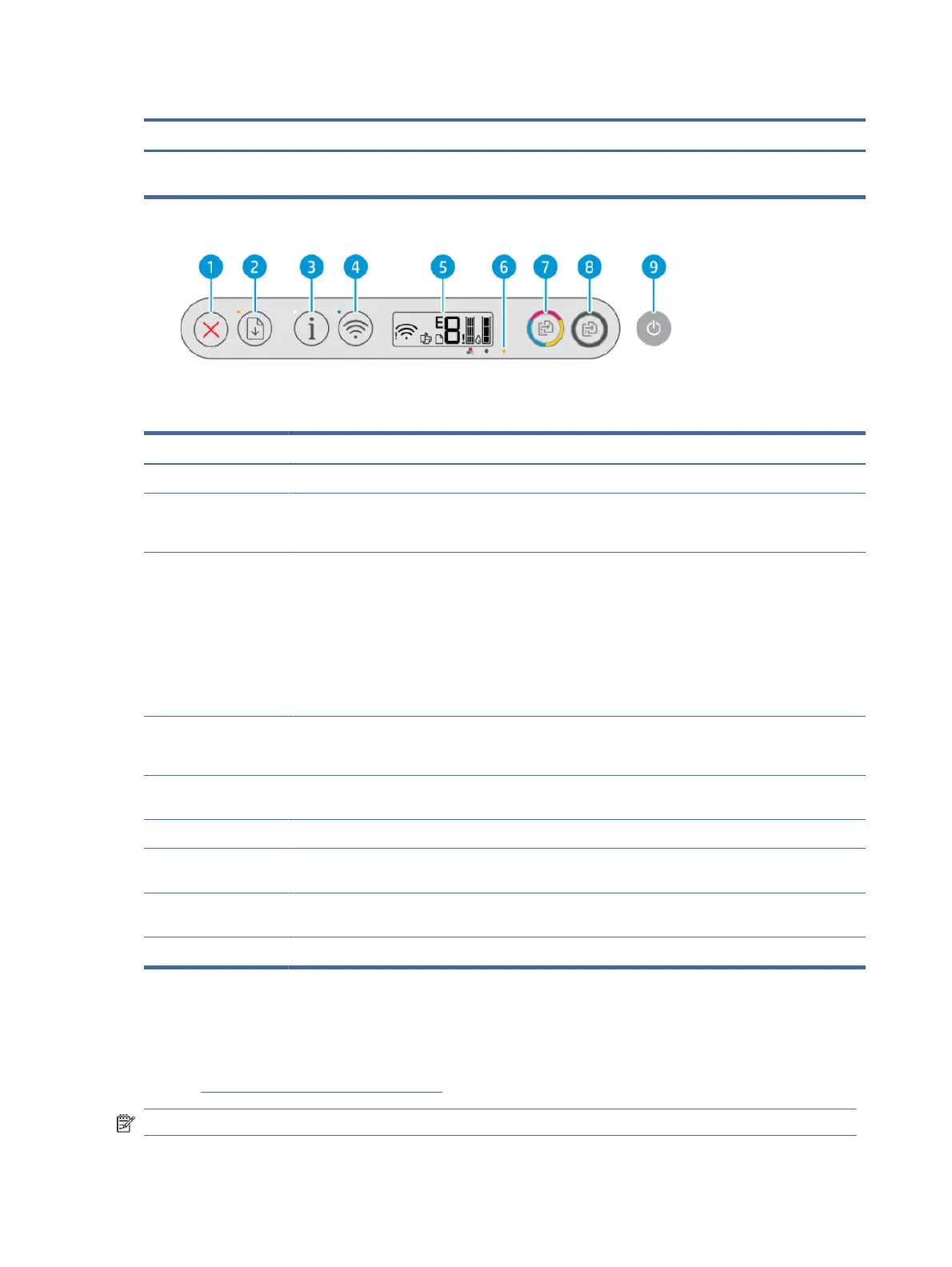 4 Wi-Fi button: Turn on or o the wireless capability of the printer.
