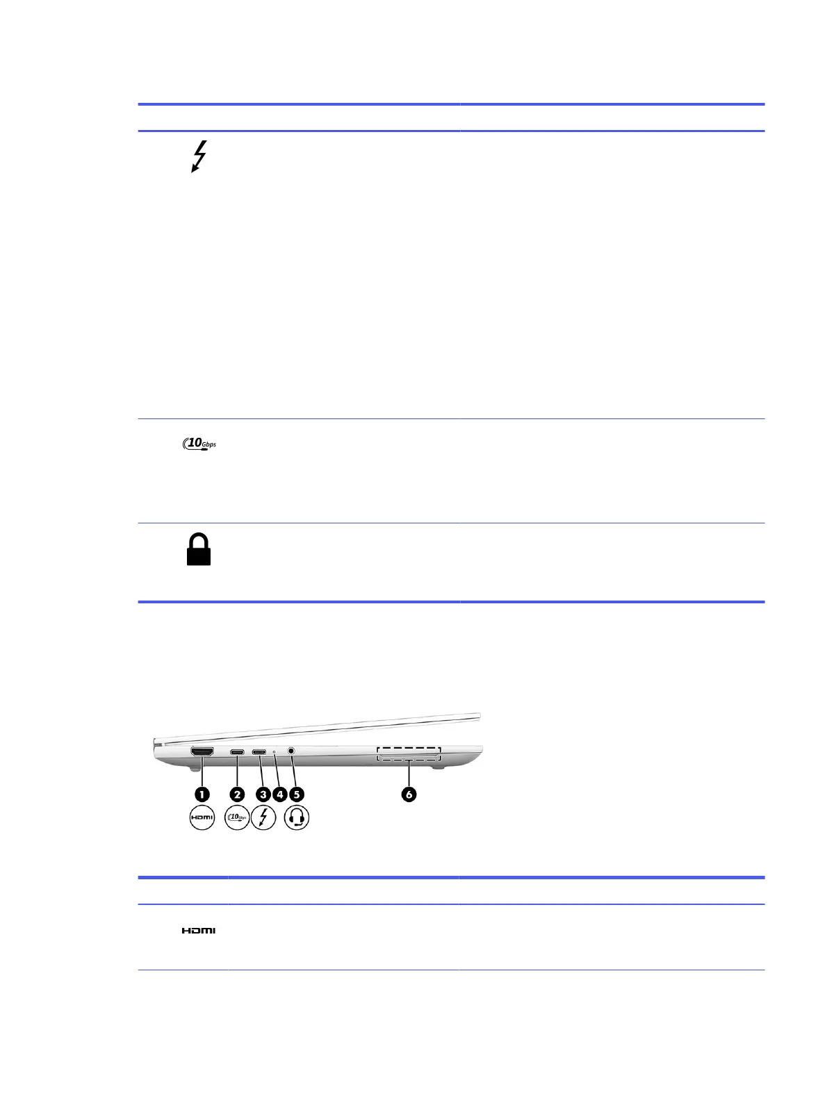 (4) USB 10 Gbps port Connects a USB device and provides high-speed data