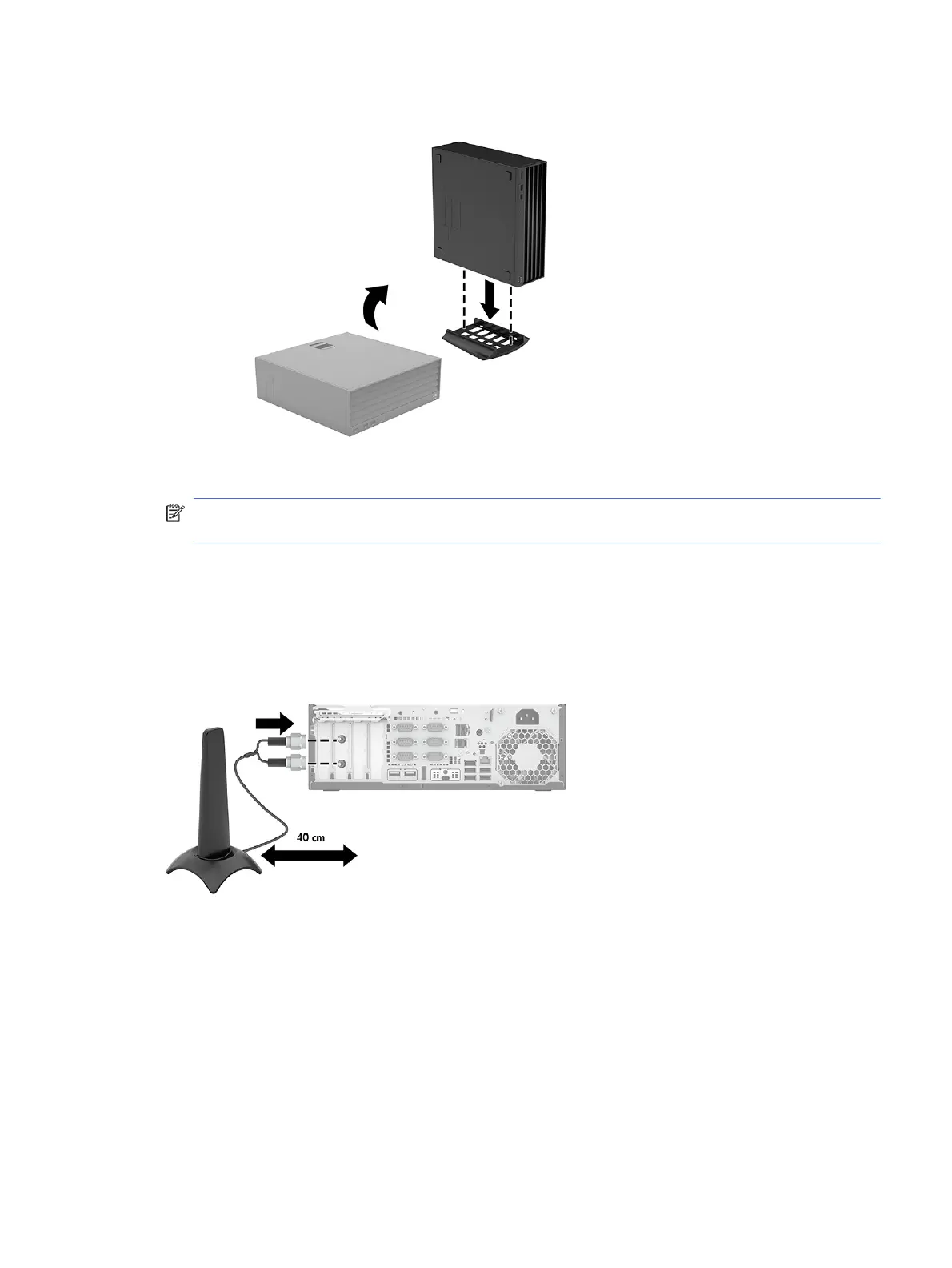 computer. Avoid placing the antenna in front of, behind, or on top of the computer because of the risk of
