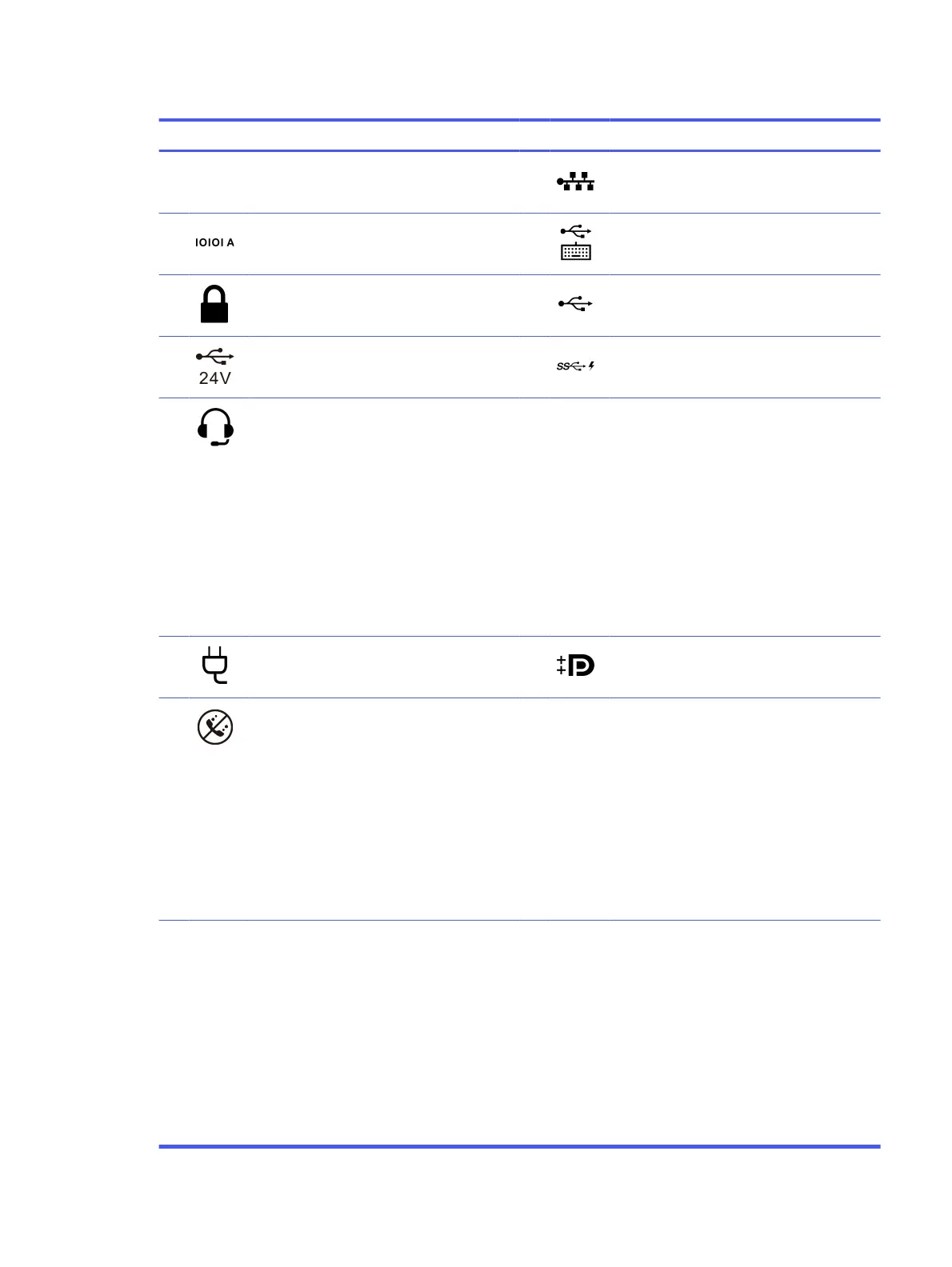 4 USB port, 24 V (optional) 11 USB 5 Gbps port with HP Sleep and Charge