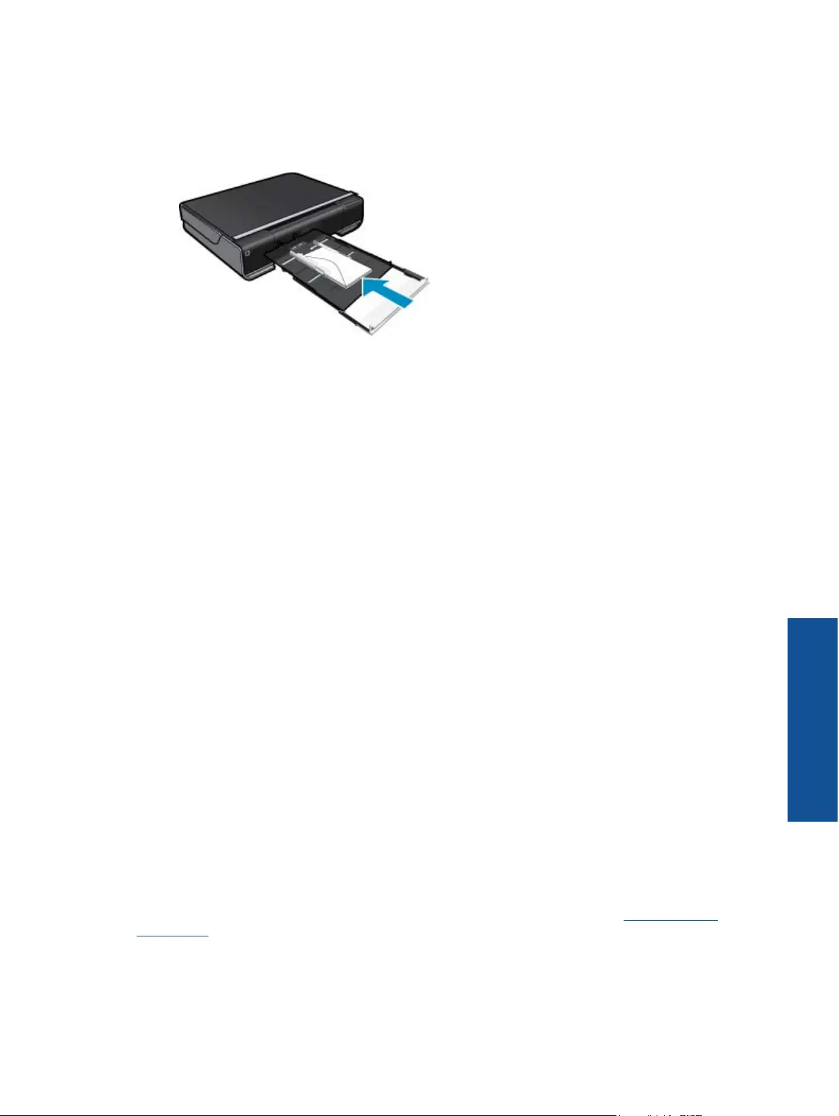 Plaats de stapel enveloppen in het midden van de papierlade met de korte rand naar voren en de afdrukzijde