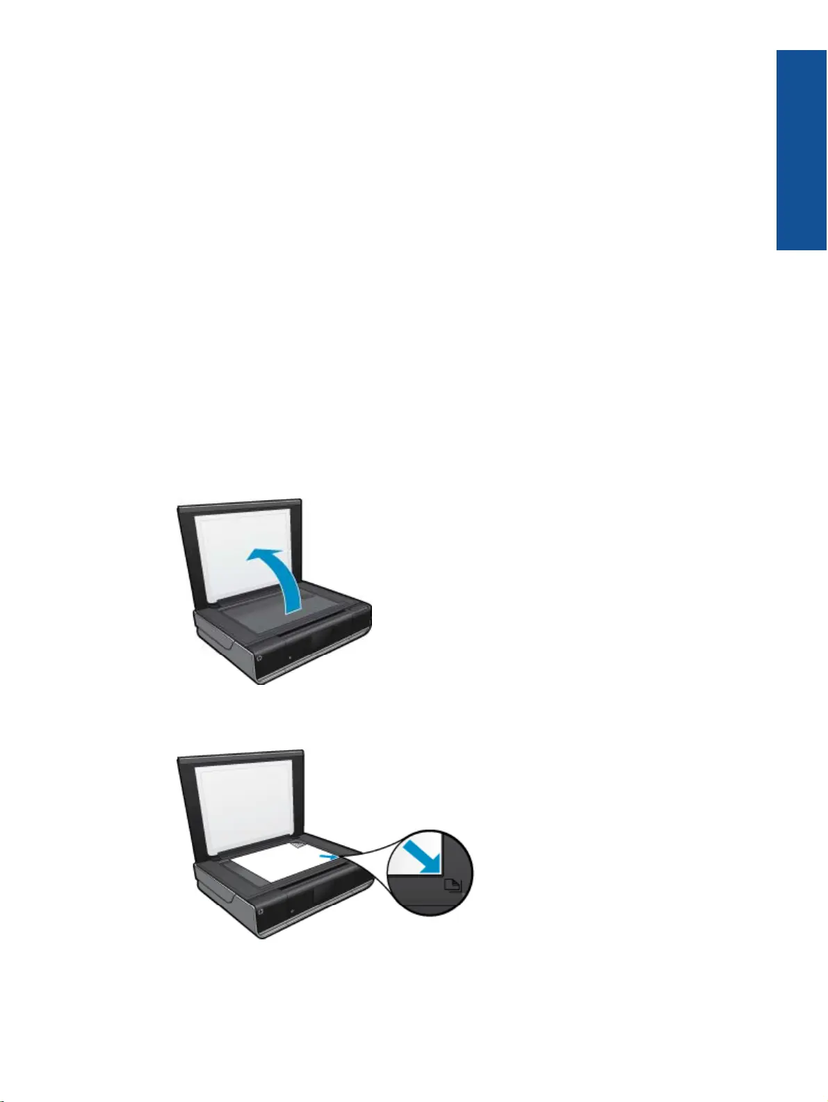 b. Plaats het origineel met de bedrukte zijde naar beneden tegen de rechter voorhoek van de glasplaat.