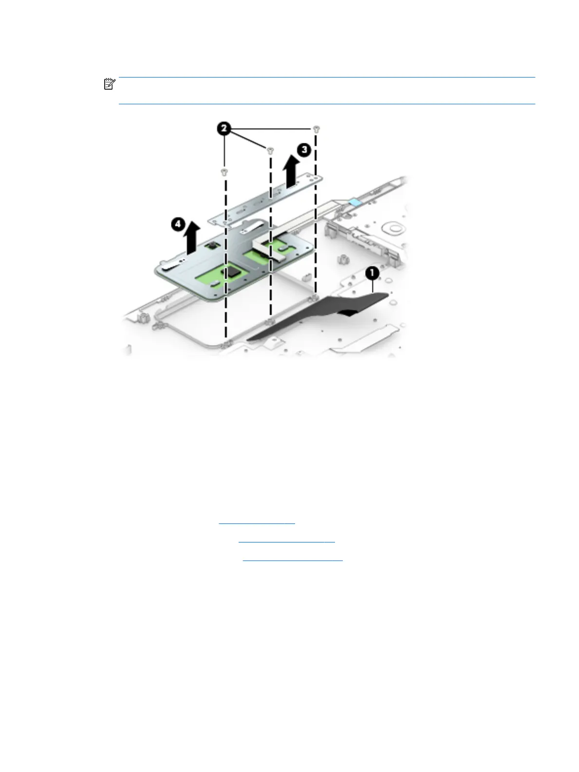 5. Lift the rear edge of the TouchPad and the rear bracket, and then remove them (3).