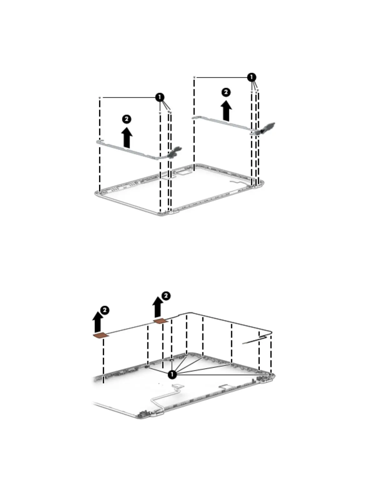 c. Detach the antenna transceivers from the display back cover (2). (The antenna transceivers are