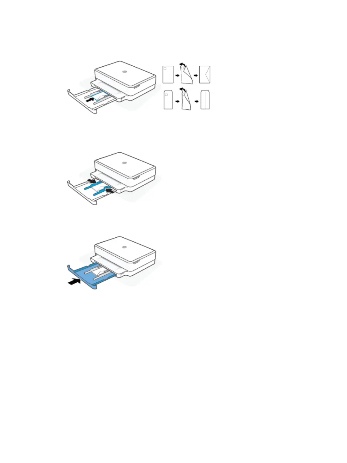 3. Insert one or more envelopes into the middle of the paper tray and slide the stack of envelopes in until it