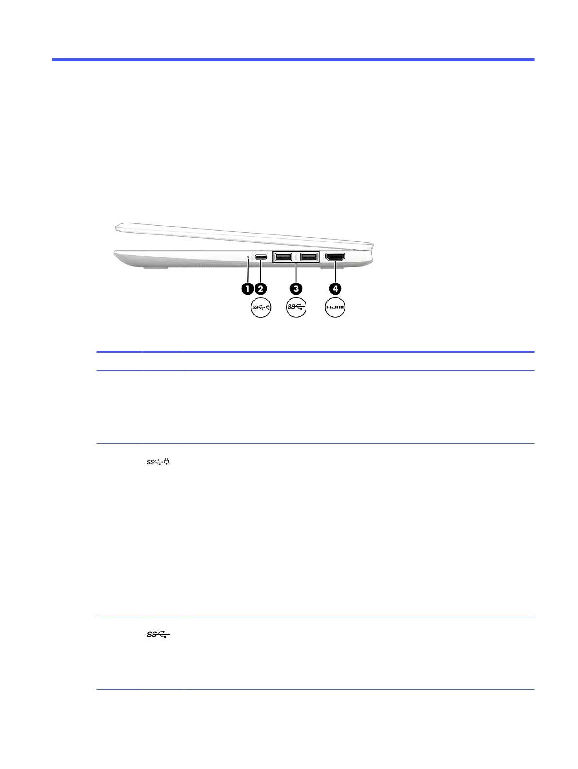 (3) USB 5 Gbps ports (2) Connect a USB device, provide high-speed data transfer,