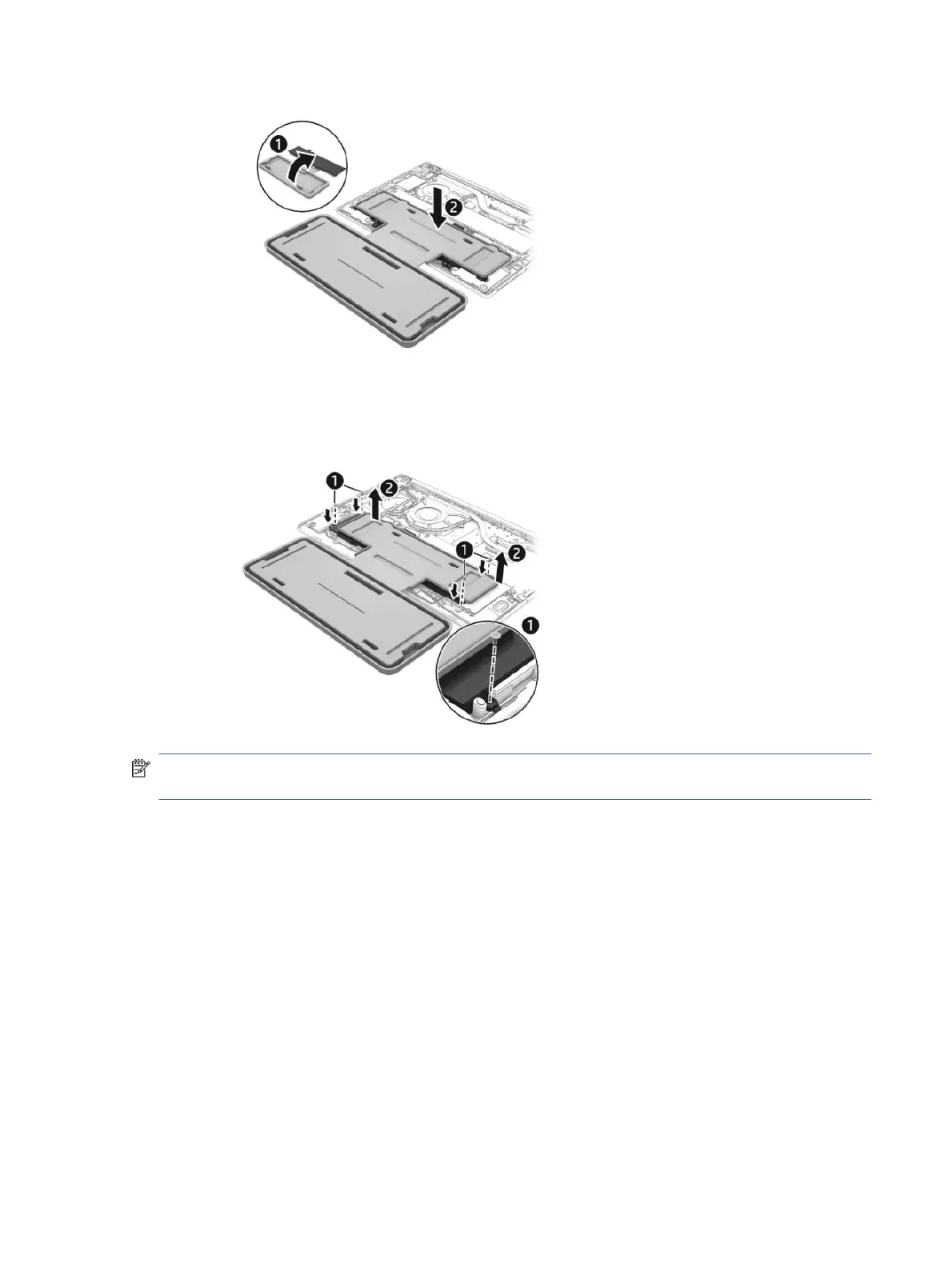 c. Install the screws (1) to secure the battery. Screw locations might vary.