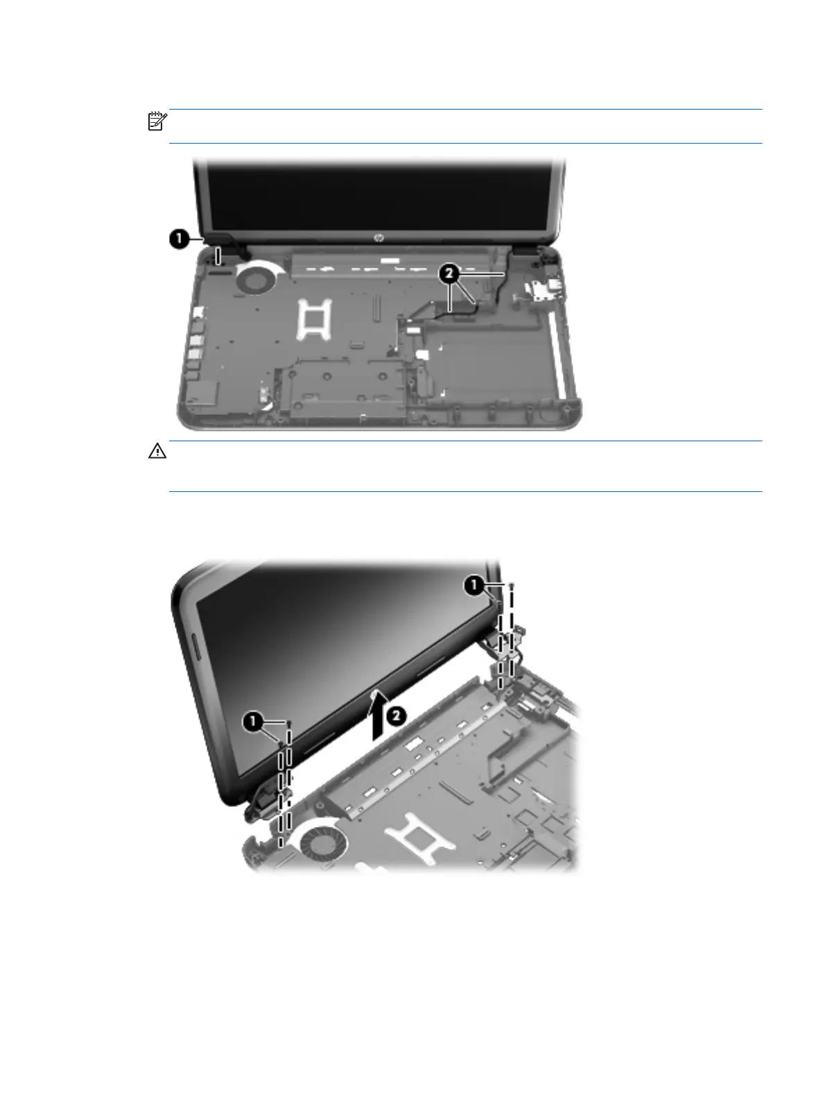 CAUTION: Support the display assembly when removing the following screws. Failure to