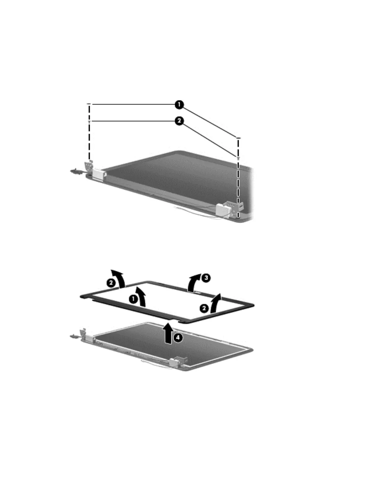 9. Flex the inside edge of the top (1), the left and right sides (2), and the bottom (3) of the display