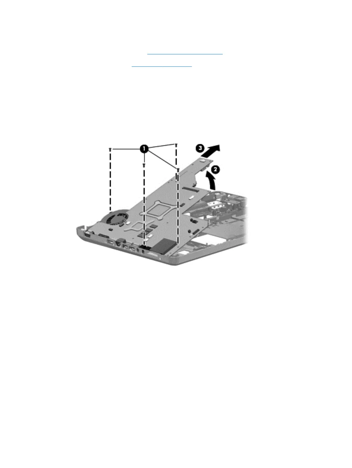 4. Lift the system board (3), and pull it away from the base enclosure at an angle.