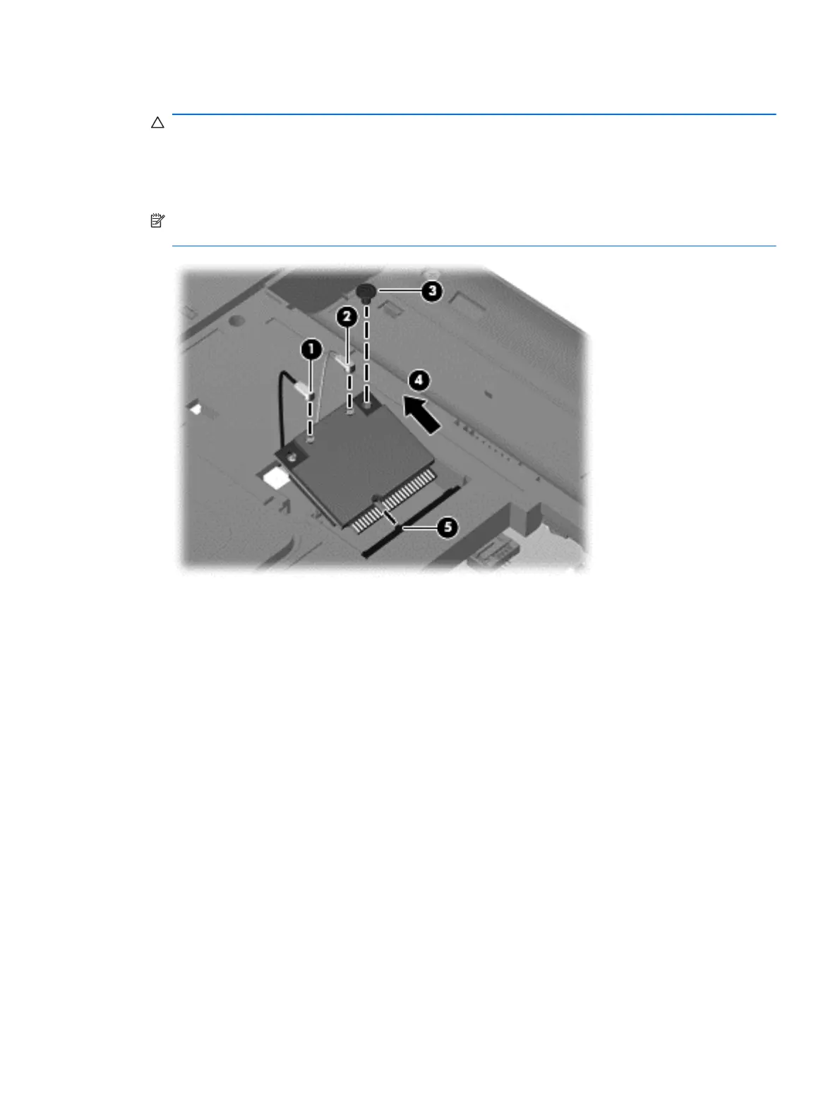 NOTE: WLAN modules are designed with a notch (5) to prevent incorrect insertion into the