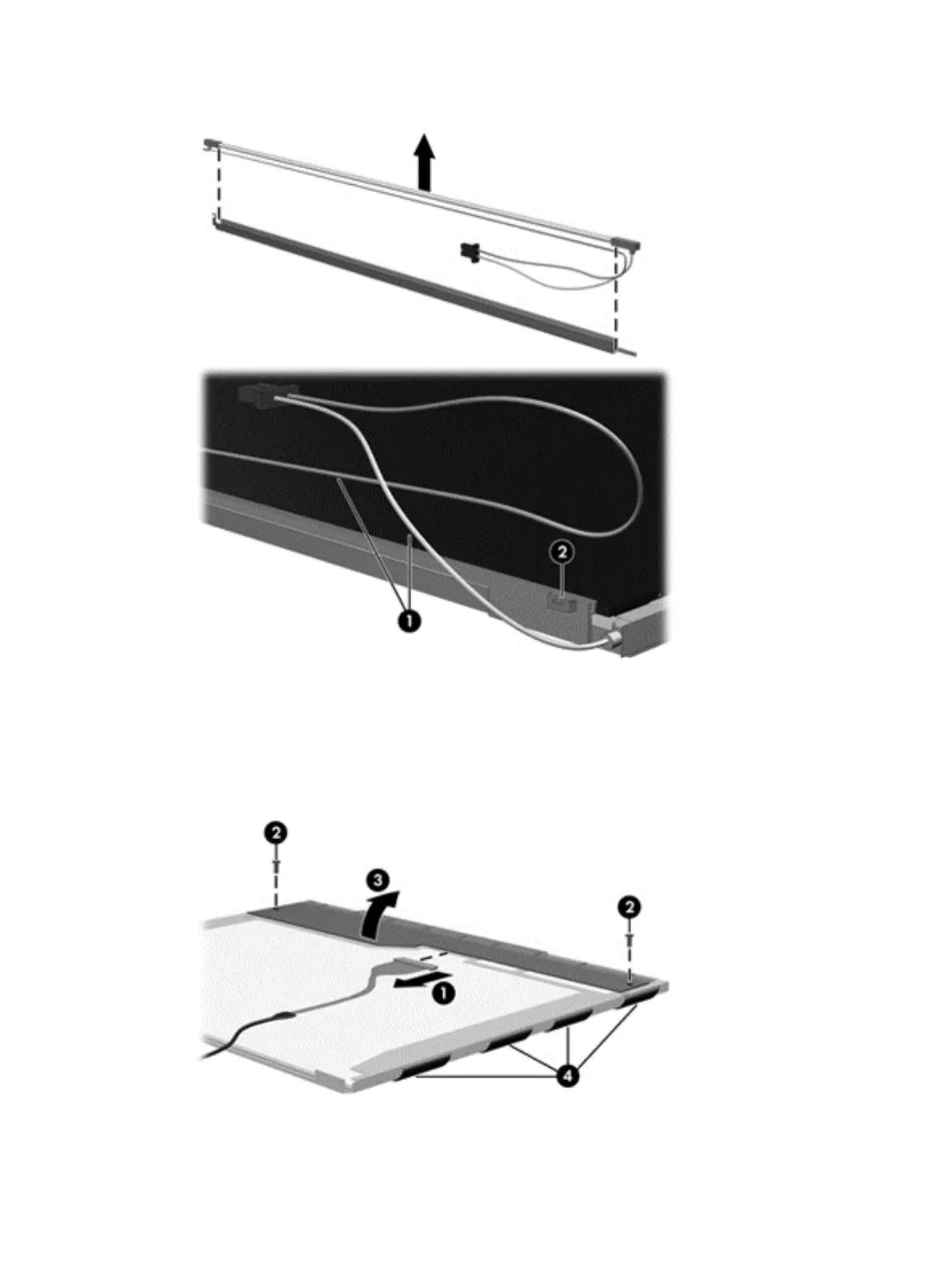 21. Release the tape (4) that secures the LCD panel to the display rear panel.