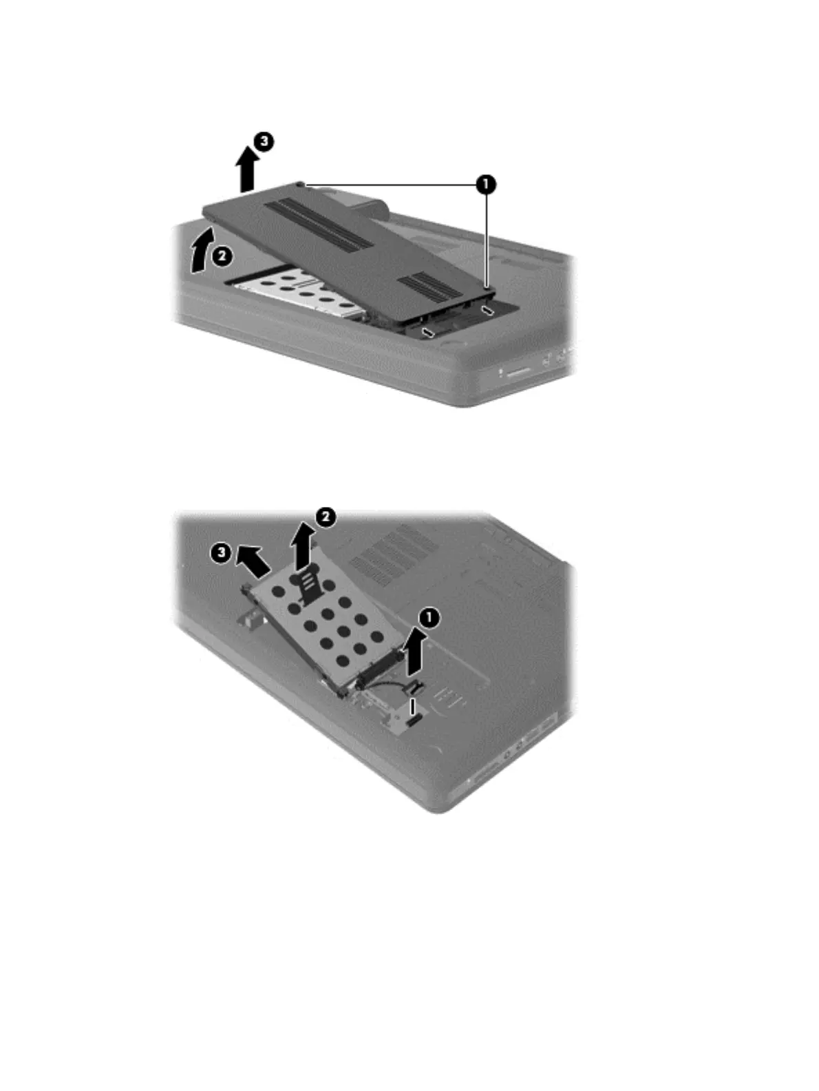 3. Lift the left side of the hard drive cover (2), swing it forward, and remove the cover (3). The hard