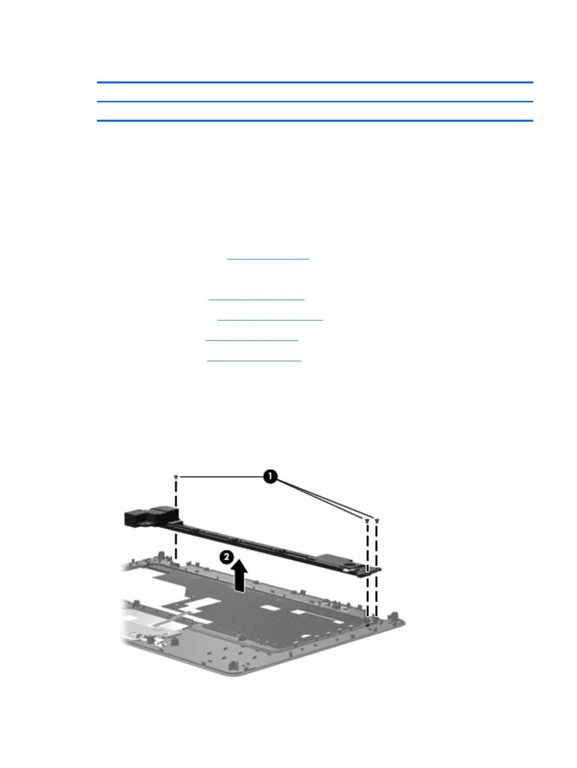 2. Remove the three Phillips PM2.5×3.0 screws (1) that secure the speaker assembly to the top