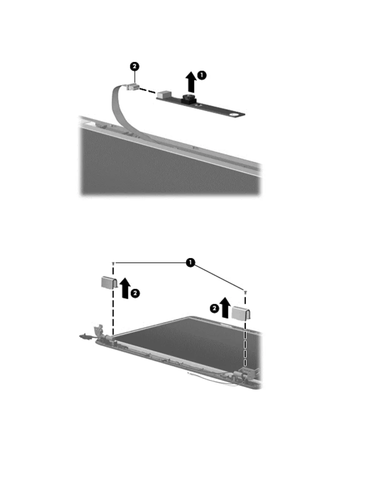 14. Remove the display hinge covers (2). The display hinge covers are available using spare part
