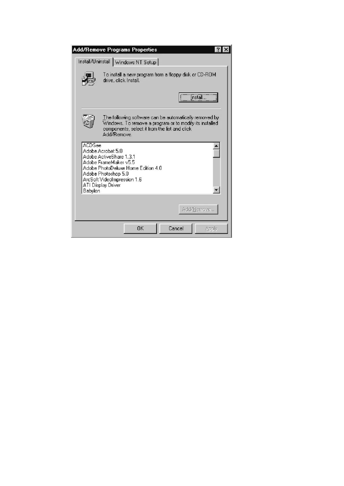 图 3-3. Add/Remove Programs Properties 窗口