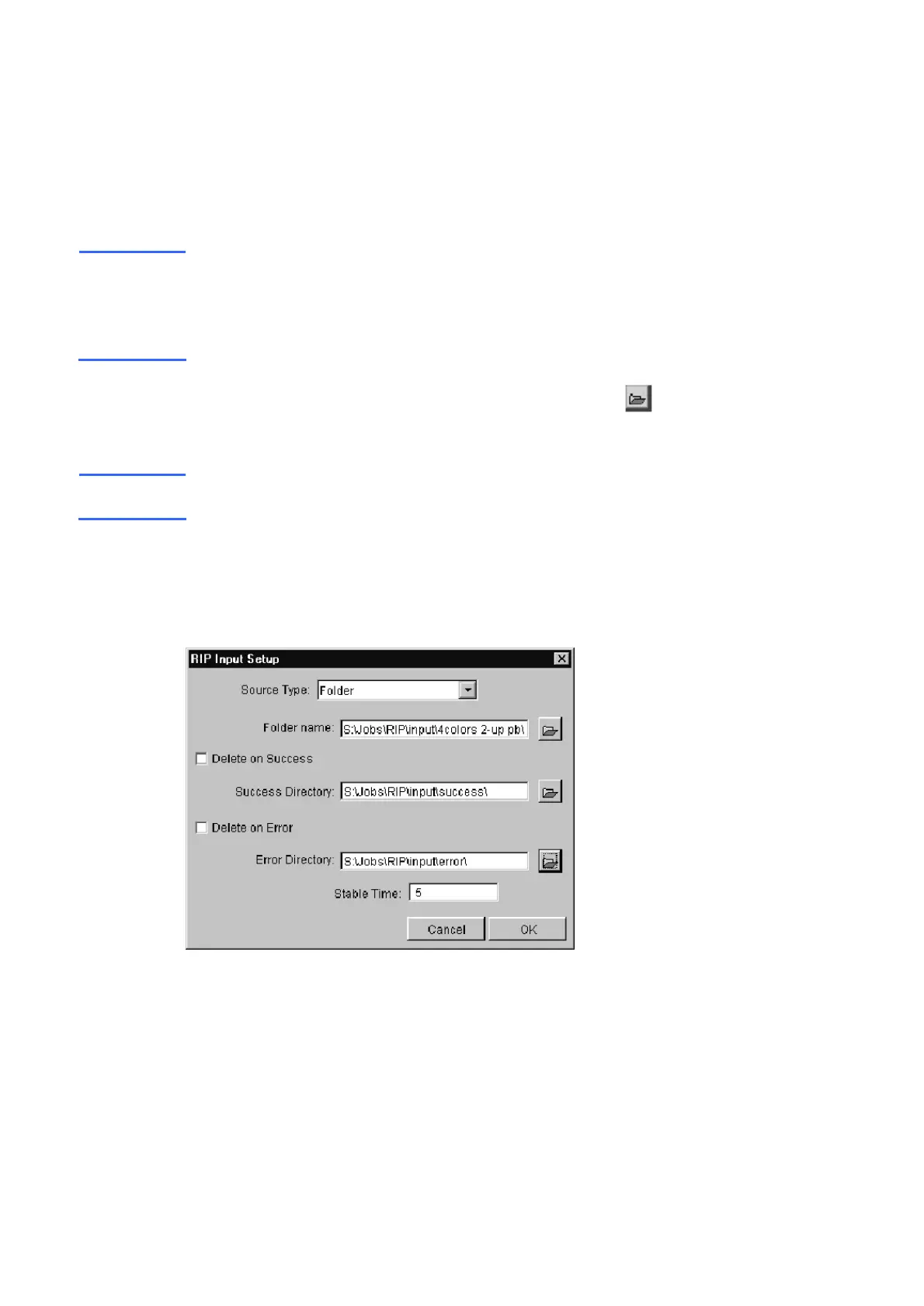 d. 单击 Select。Select a directory 窗口关闭。在 RIP Input Setup 窗口中选定的