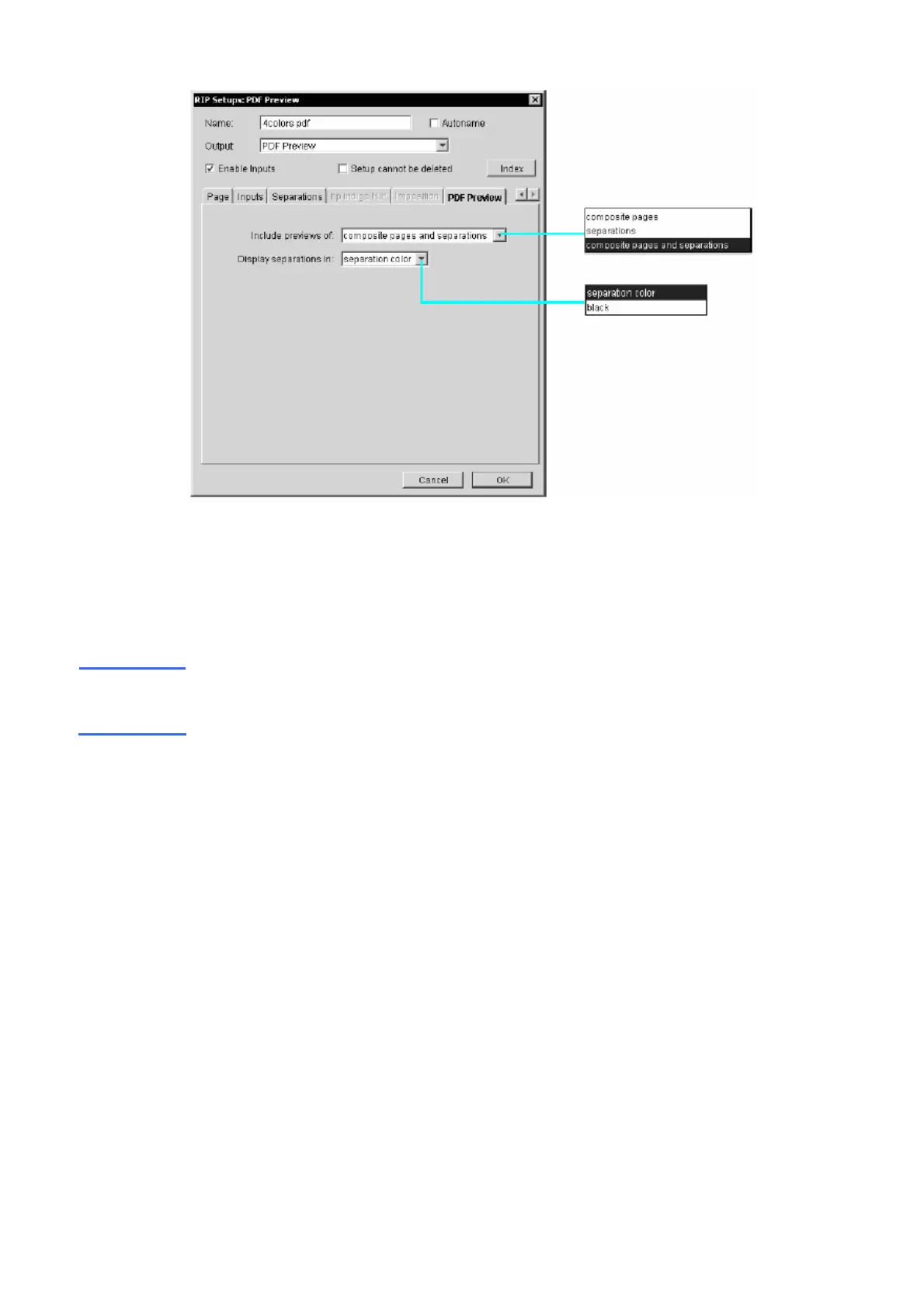 图 5-27. RIP Setups 窗口,PDF Preview 选项卡