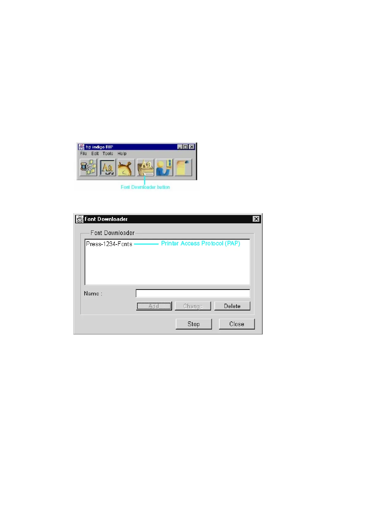 图 7-1. hp indigo RIP 工具栏,字库下载程序