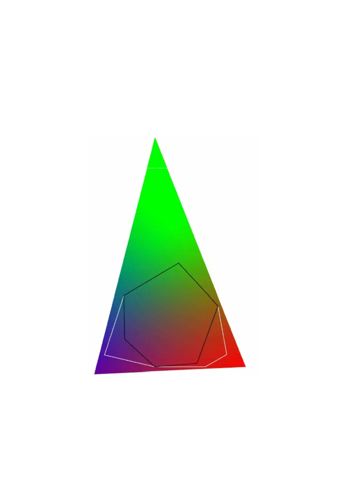 青、品红、黄和黑(CMYK)色域是较宽广色域的组成部分。通过填加 2 种单色油墨(
