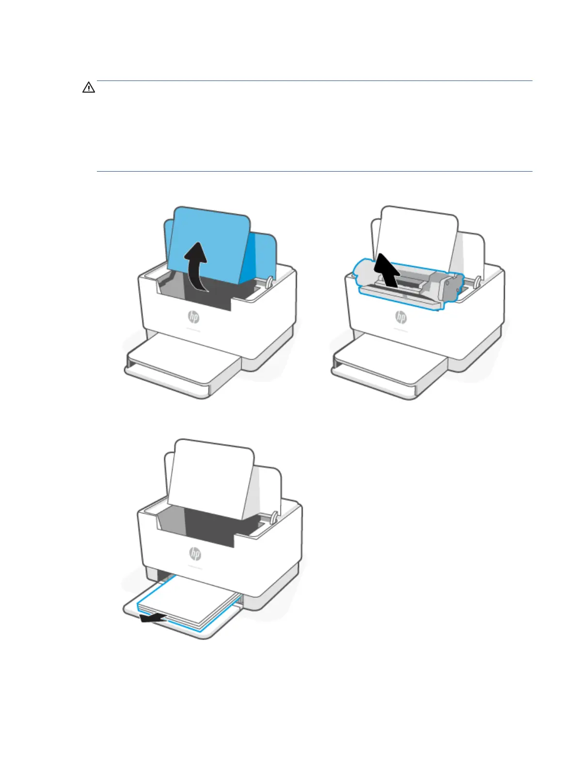 VOORZICHTIG: Gebruik geen scherpe objecten, zoals een pincet of punttang, om vastgelopen papier te