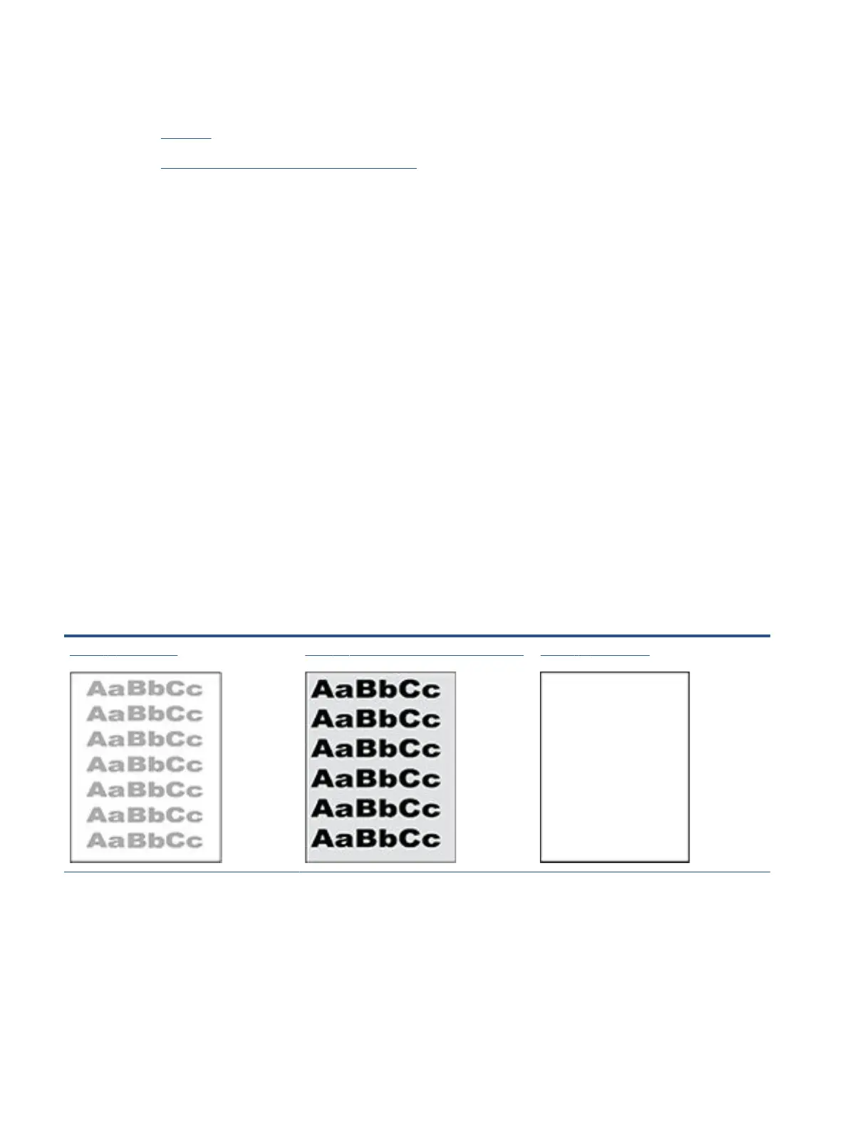 Tabel 7-8 Lichte afdruk Tabel 7-9 Grijze achtergrond of donkere afdruk Tabel 7-10 Lege pagina