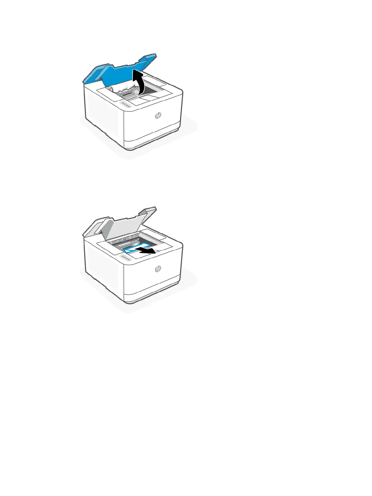 2. Before removing the cartridge, remove any jammed paper in the output tray area. If you can see the