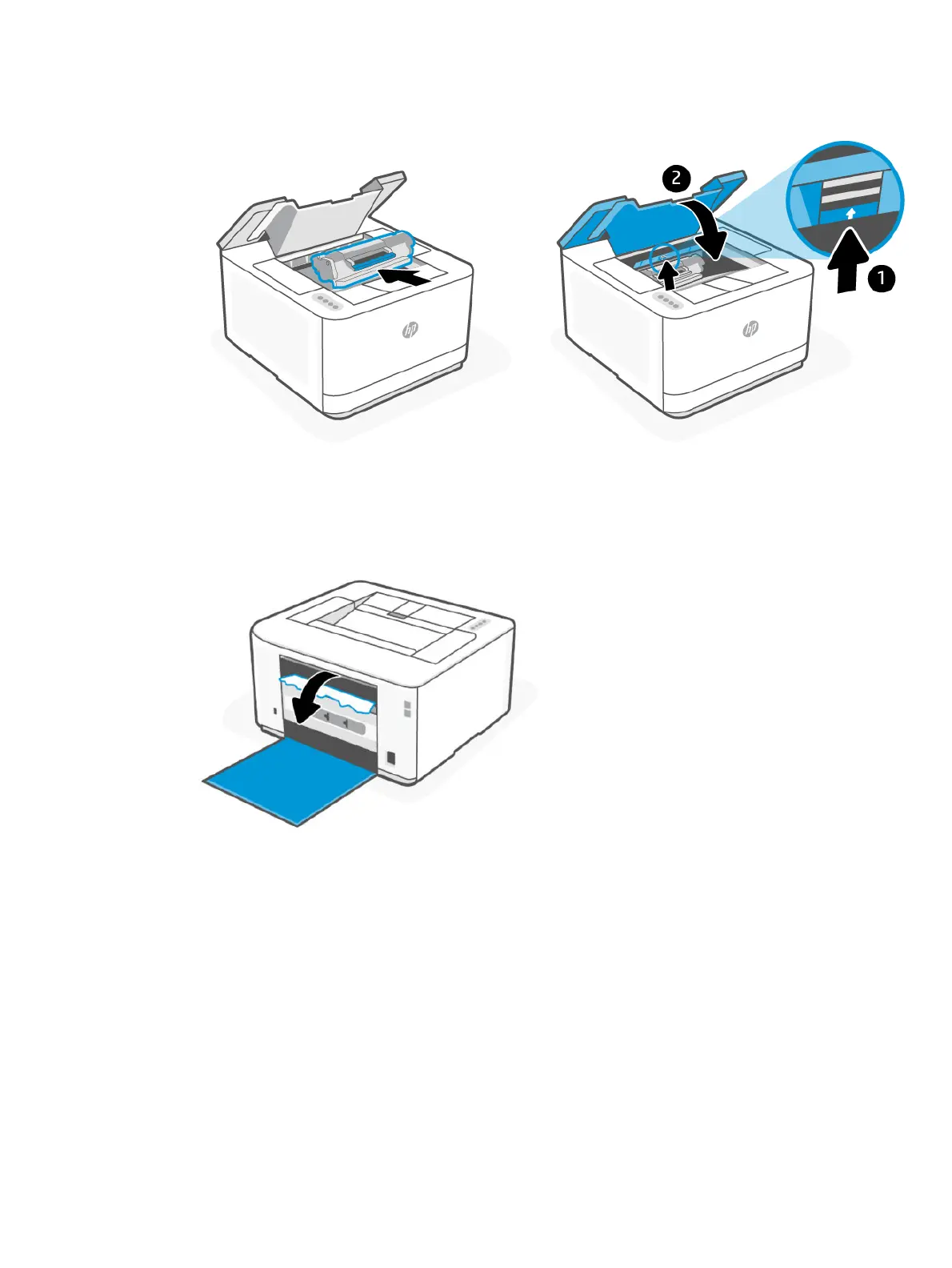 Clear jams from the rear of the printer