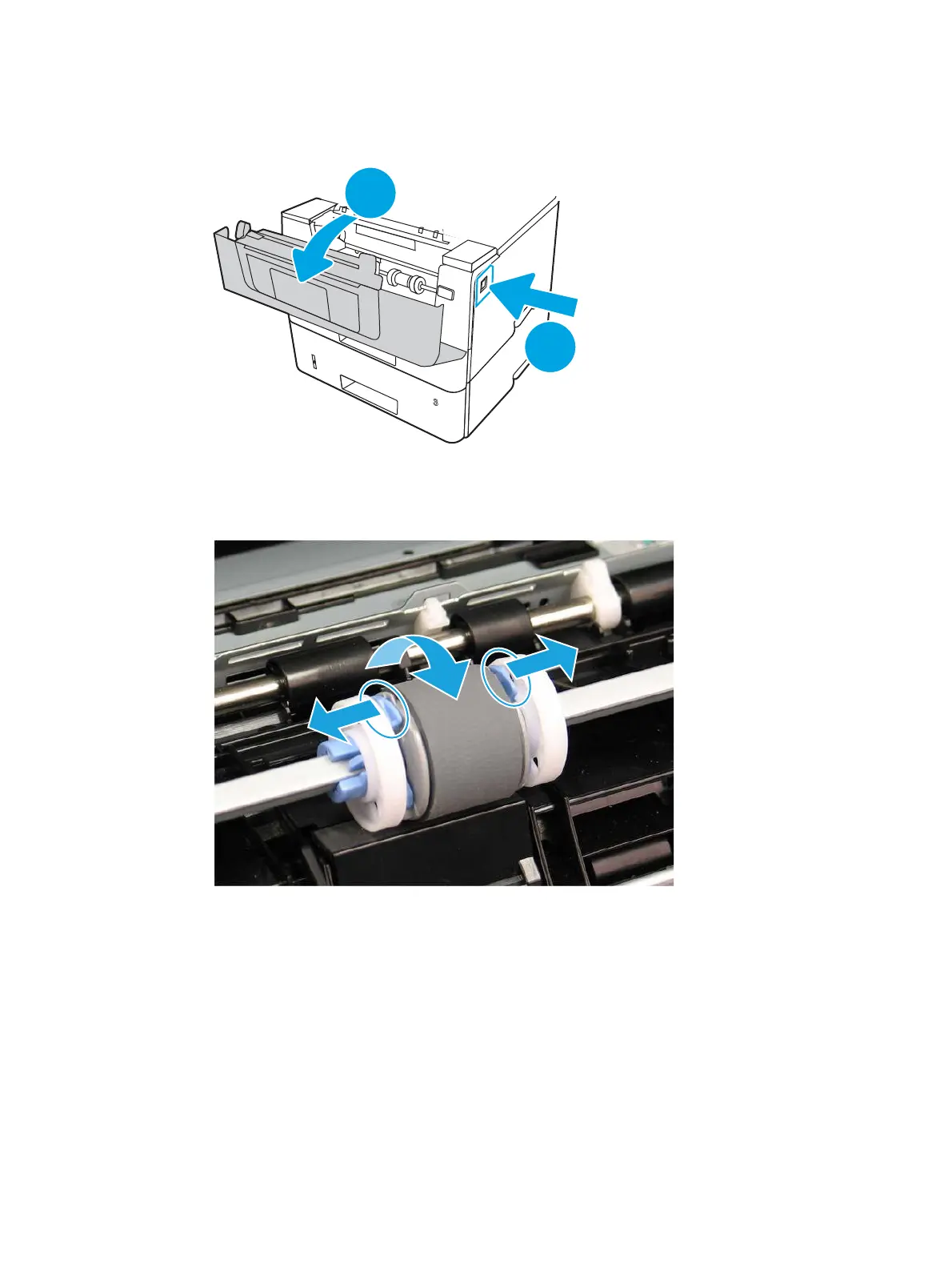 rotate the top of the roller out and away from the printer.