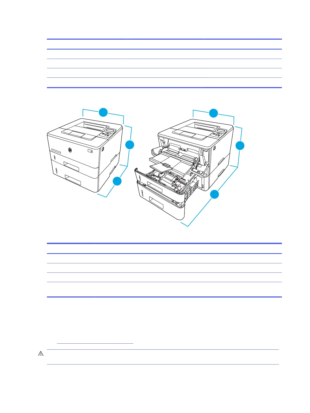 Table 1-9 Dimensions for the optional 550-sheet tray