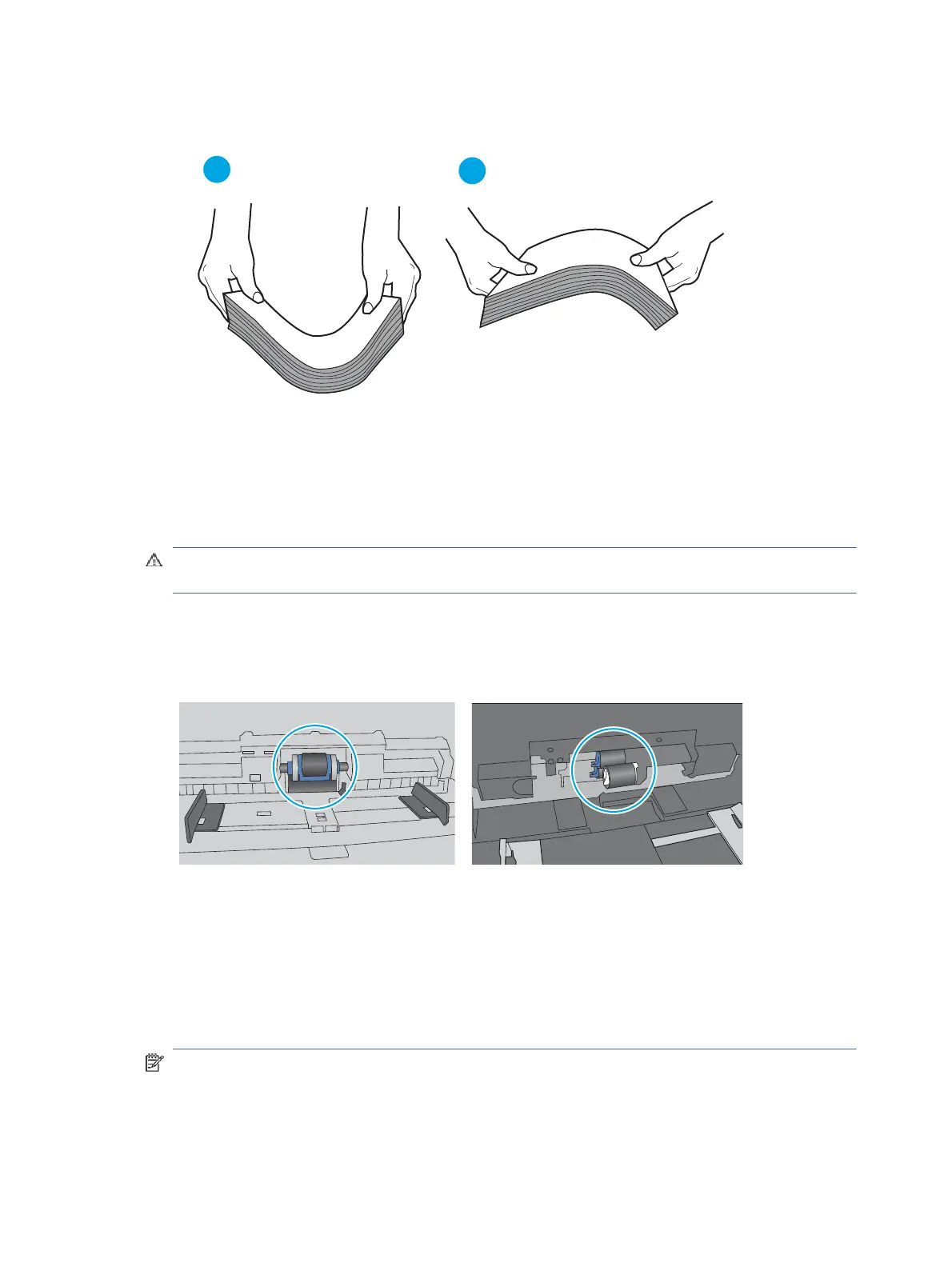NOTE: Fanning the paper introduces static electricity. Instead of fanning the paper, flex the stack