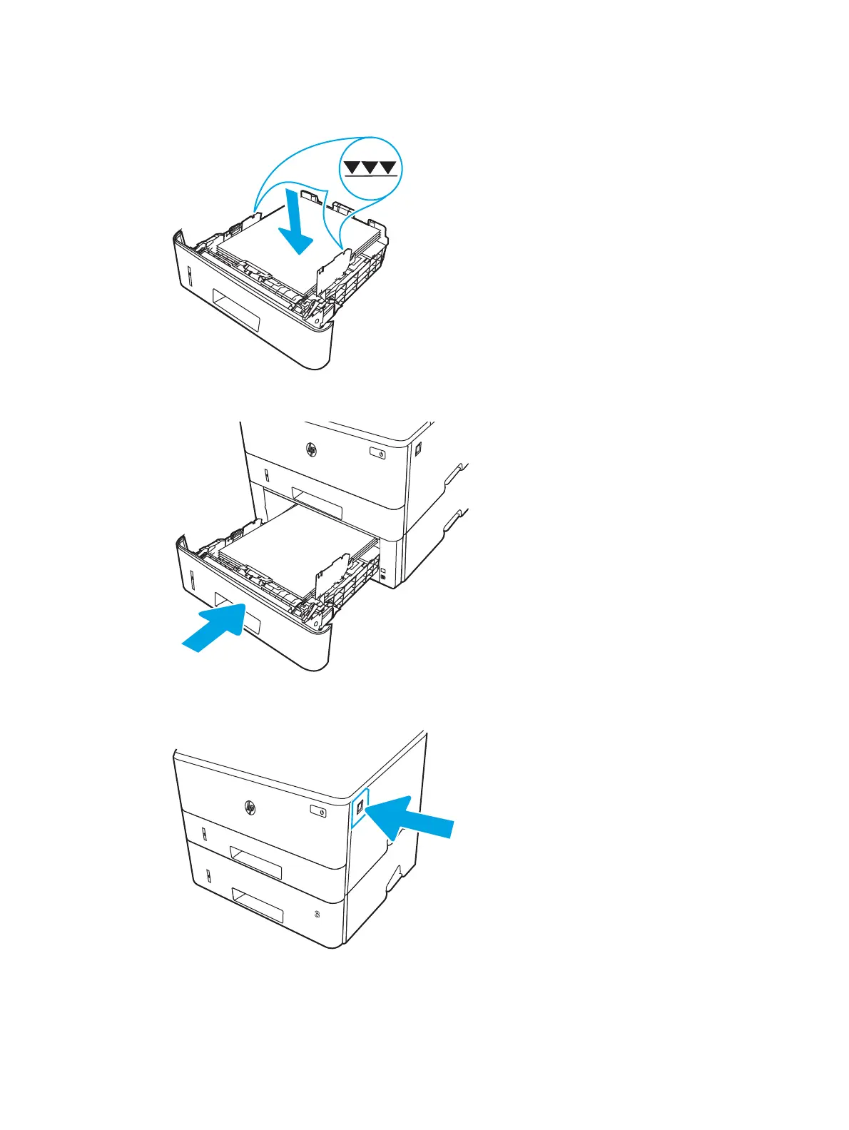 4. Load the paper into the tray. Make sure that the stack is flat at all four corners and that the top of