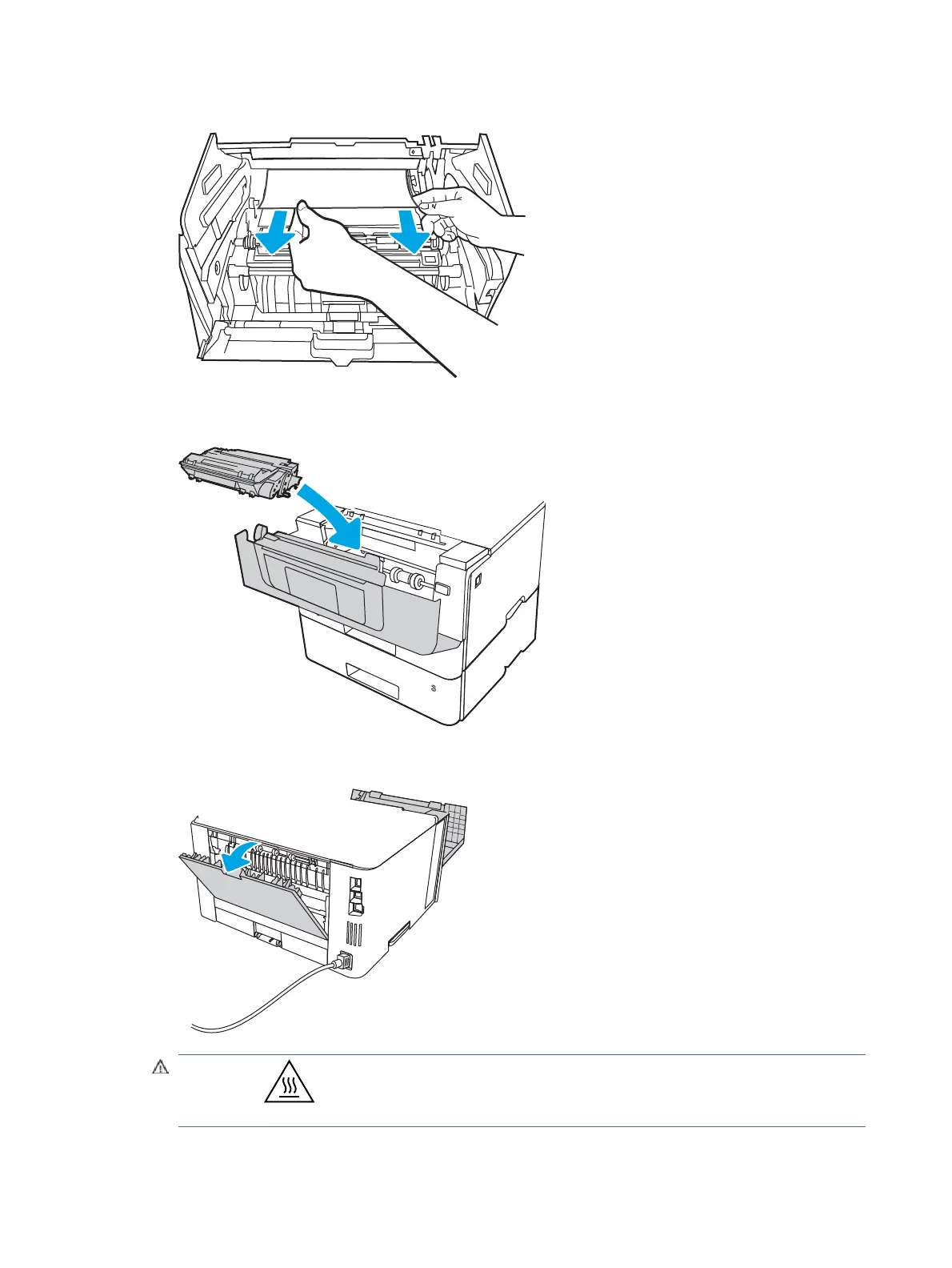 CAUTION: The fuser can be hot while the printer is in use. Wait for the fuser to cool before