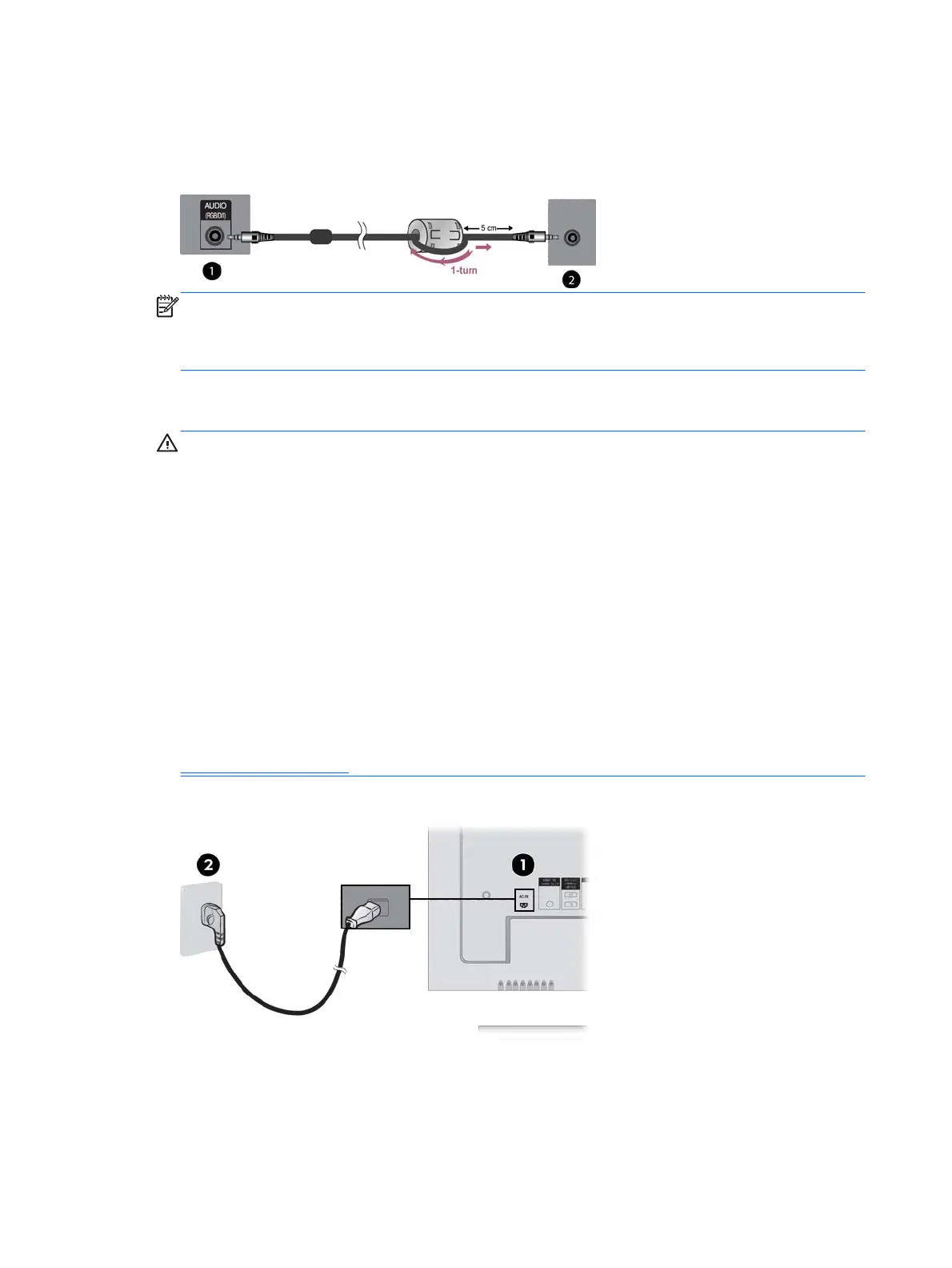 4. Sluit de voedingskabel aan op de netvoedingsconnector (1) aan de achterkant van de monitor.