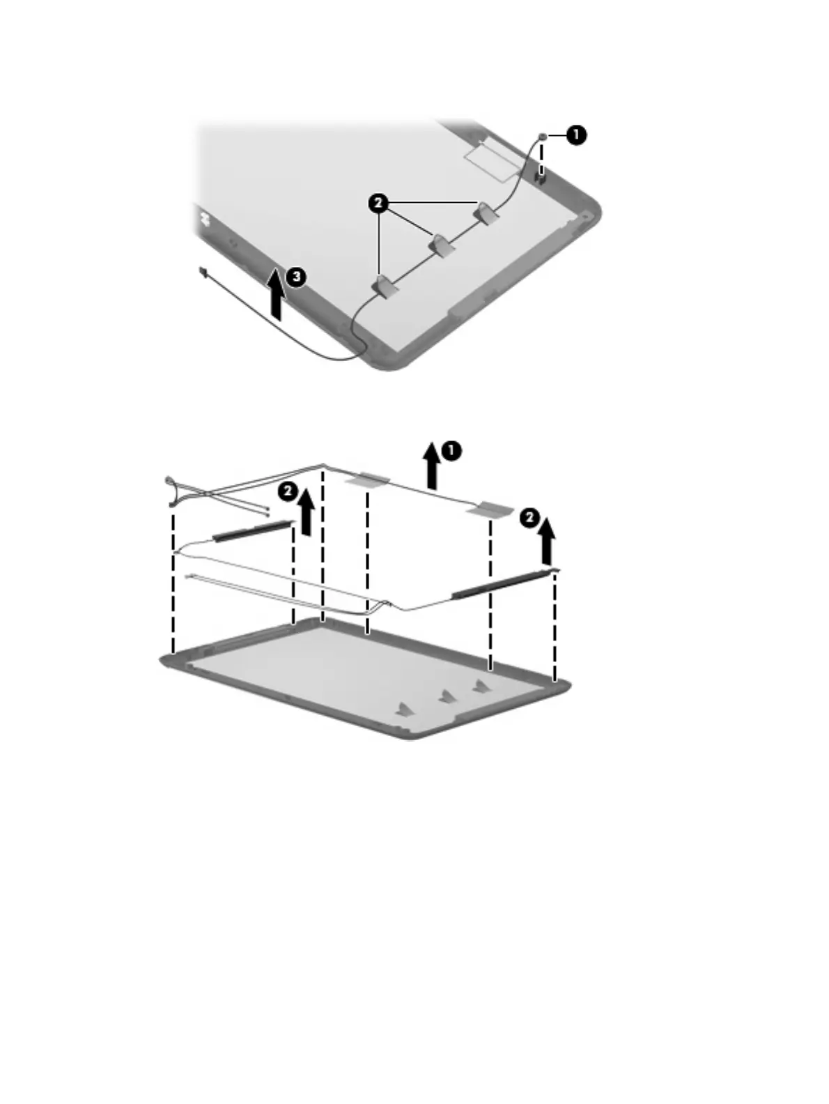 the adhesive (1) that secures them to the display enclosure, and then remove the cables (2).