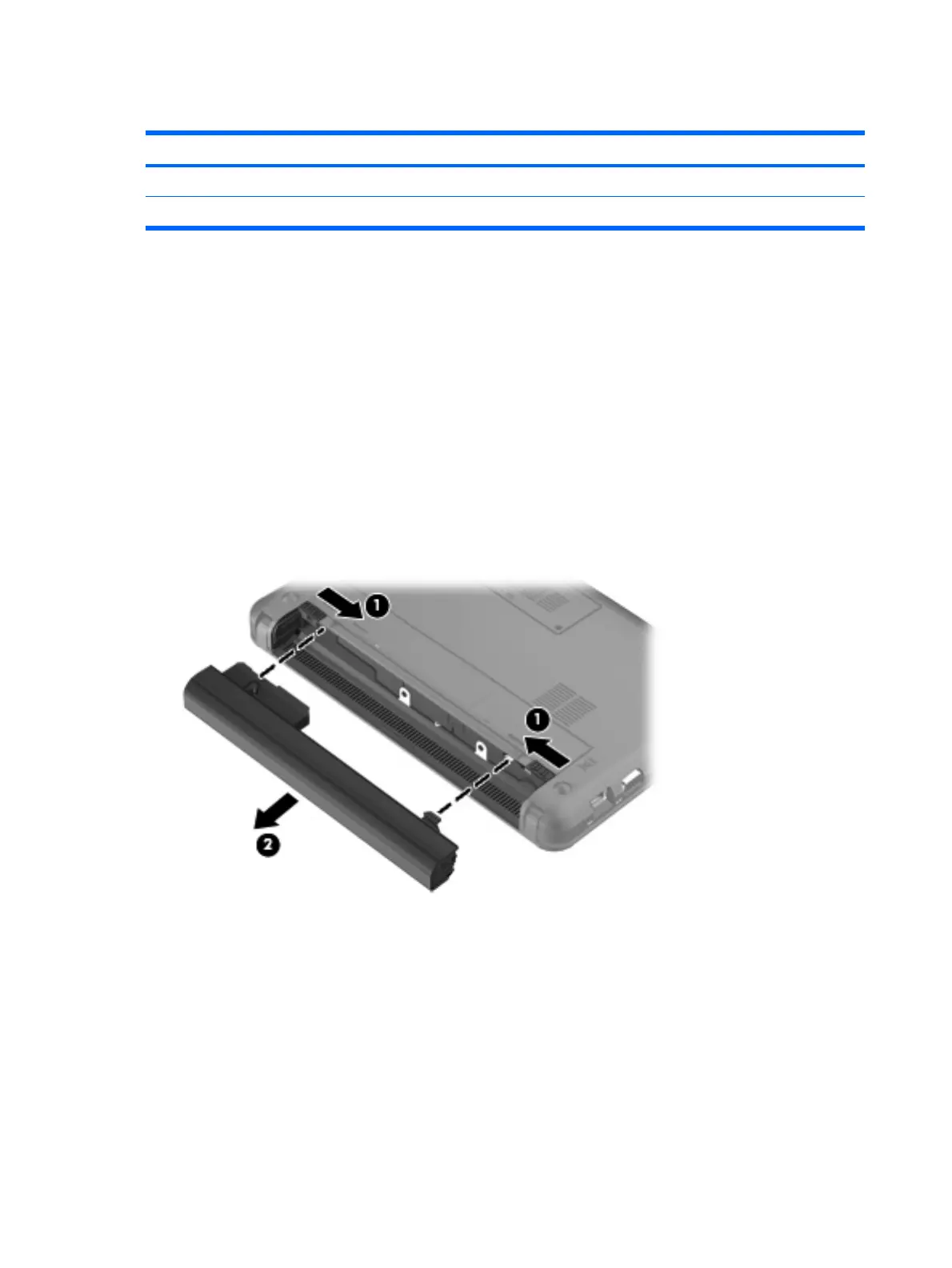 2. Slide the battery release latches (1) to release the battery.