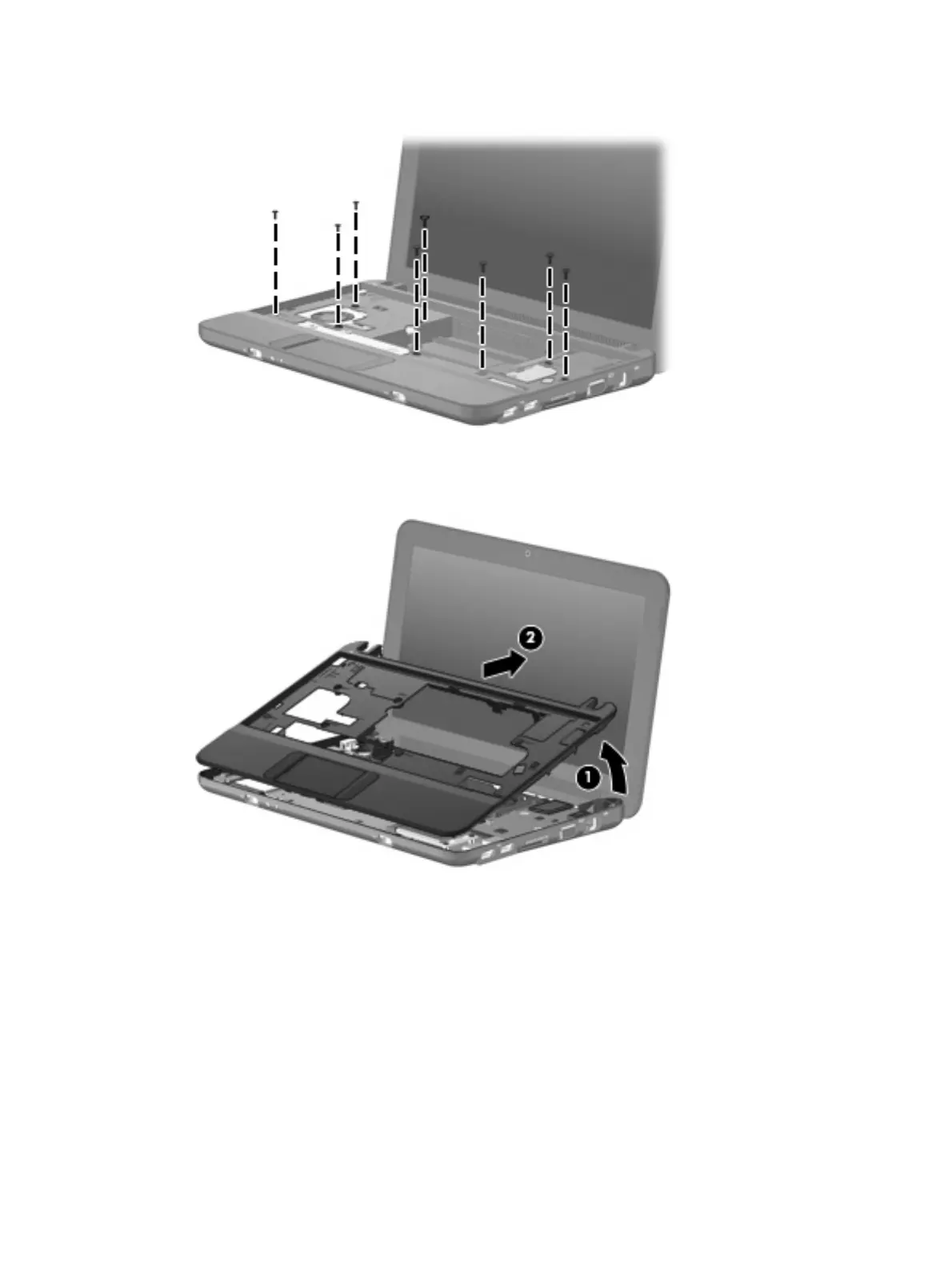 8. Release the ZIF connector (1) to which the TouchPad button board cable is connected.