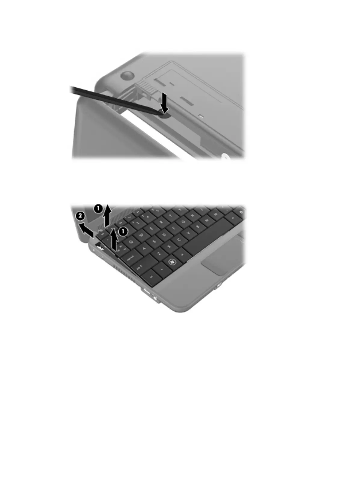 4. Insert a flexible tool into the opening, and then press inward to release the keyboard.