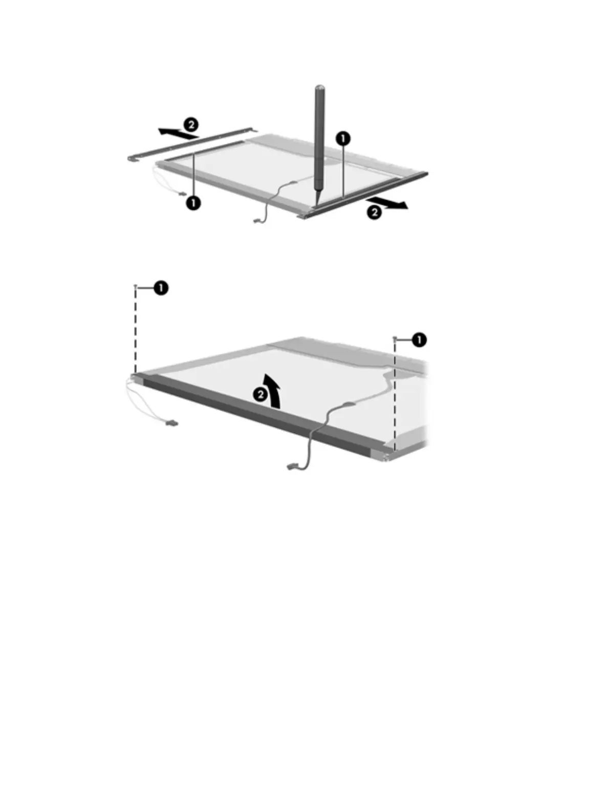 11. Remove the screws (1) that secure the backlight cover to the display panel.