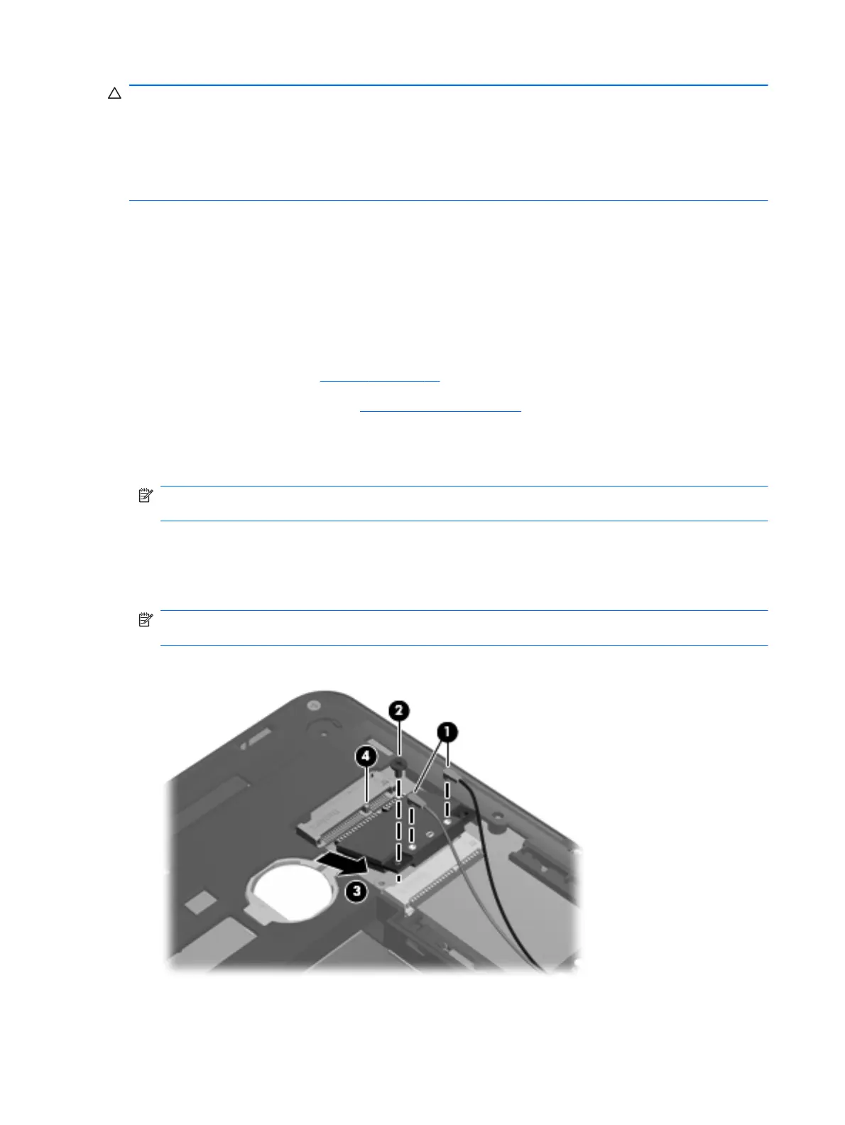 CAUTION: The WWAN module and the WLAN module are not interchangeable.